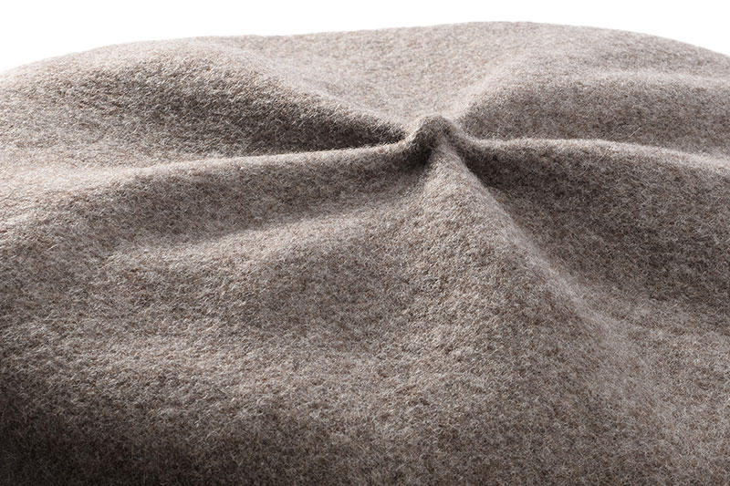 本製品は、縮絨による製品です。一度縫製した後、縮絨によりふかふかに仕上げています。見た目も秋冬らしいシルエットです。
