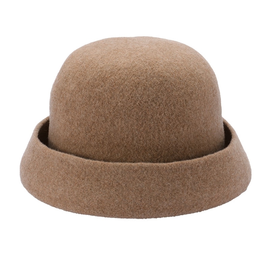 全体的につばが上がったデザインで、カジュアルな雰囲気からセミフォーマルまでカバーする婦人用帽子。つばは単にロールアップしているのではなく、マチ付きでコの字を描いたようにアップしているのが特長です。制帽を手掛けているからこそ出来るデザインで、オリジナリティに富んでいます。素材は、小金毛織製のPOSHウールを100%使用しています。