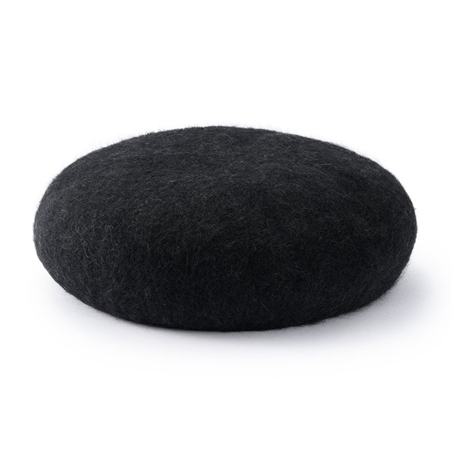 ヘアスタイルやファッションを選ばないベレー帽。スタンダードなシルエットのベレー帽で、リブ付きが特長です。いつもより毛足を長めに残した暖かそうなアンゴラ混のフェルトはウール100%より軽くやわらかな感じです。原料の糸も国内で紡績したもので、素材からこだわったメイドインジャパンの逸品です。