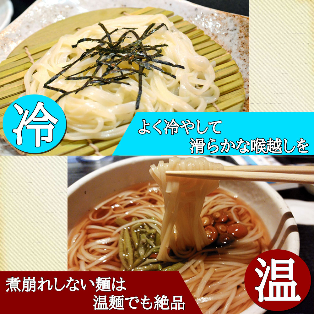 平らな細麺で、しっかりしたコシとのどごしの良さが特徴です。