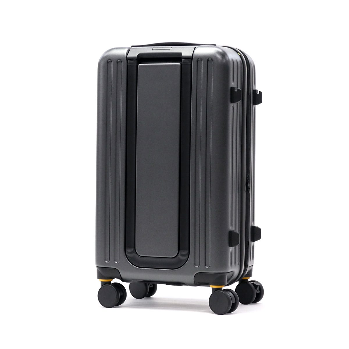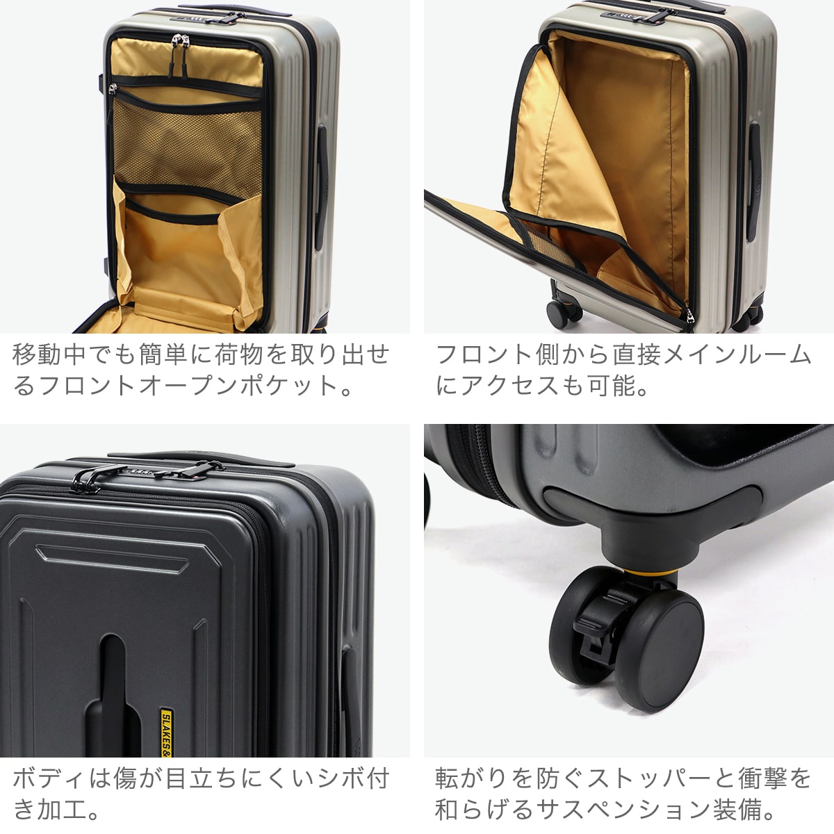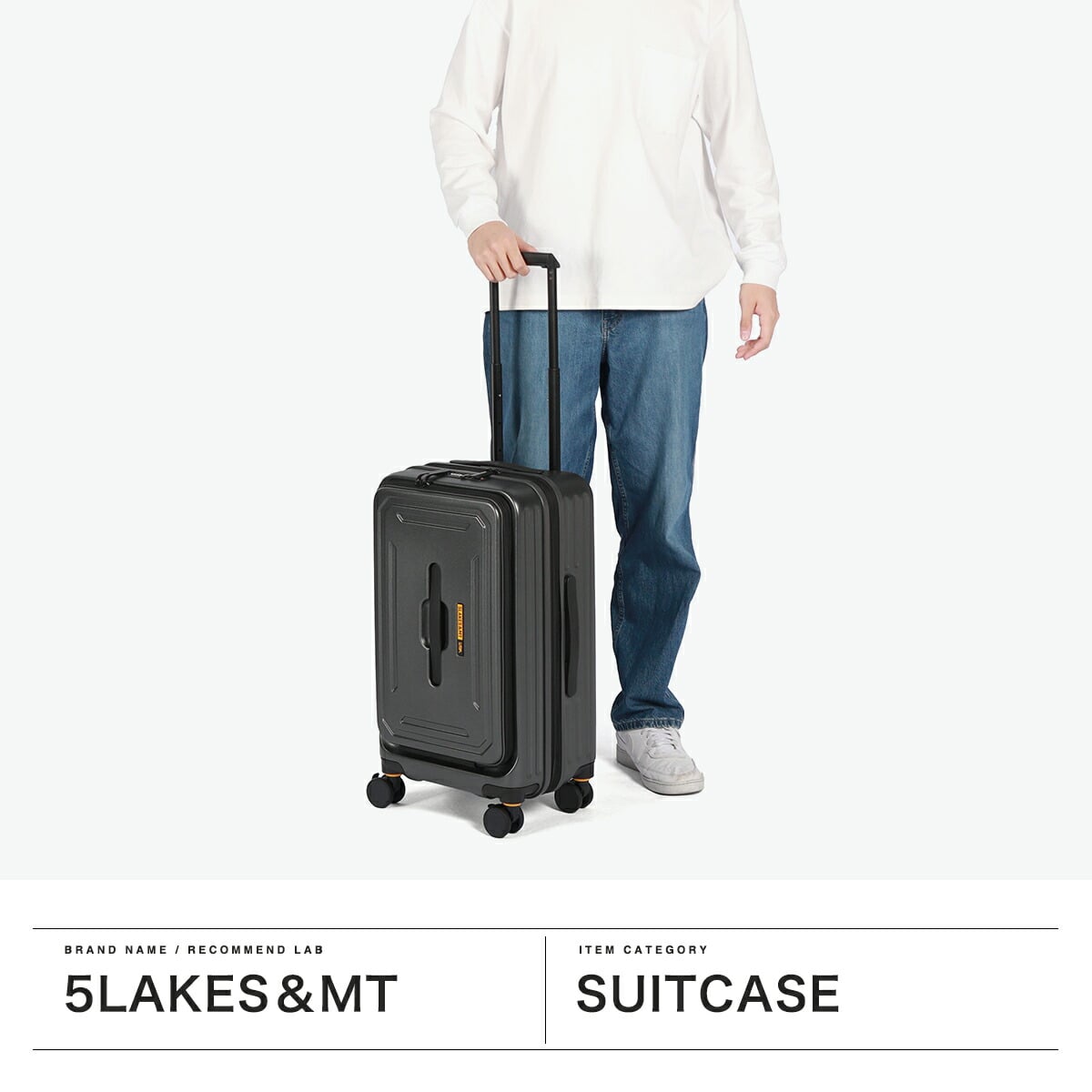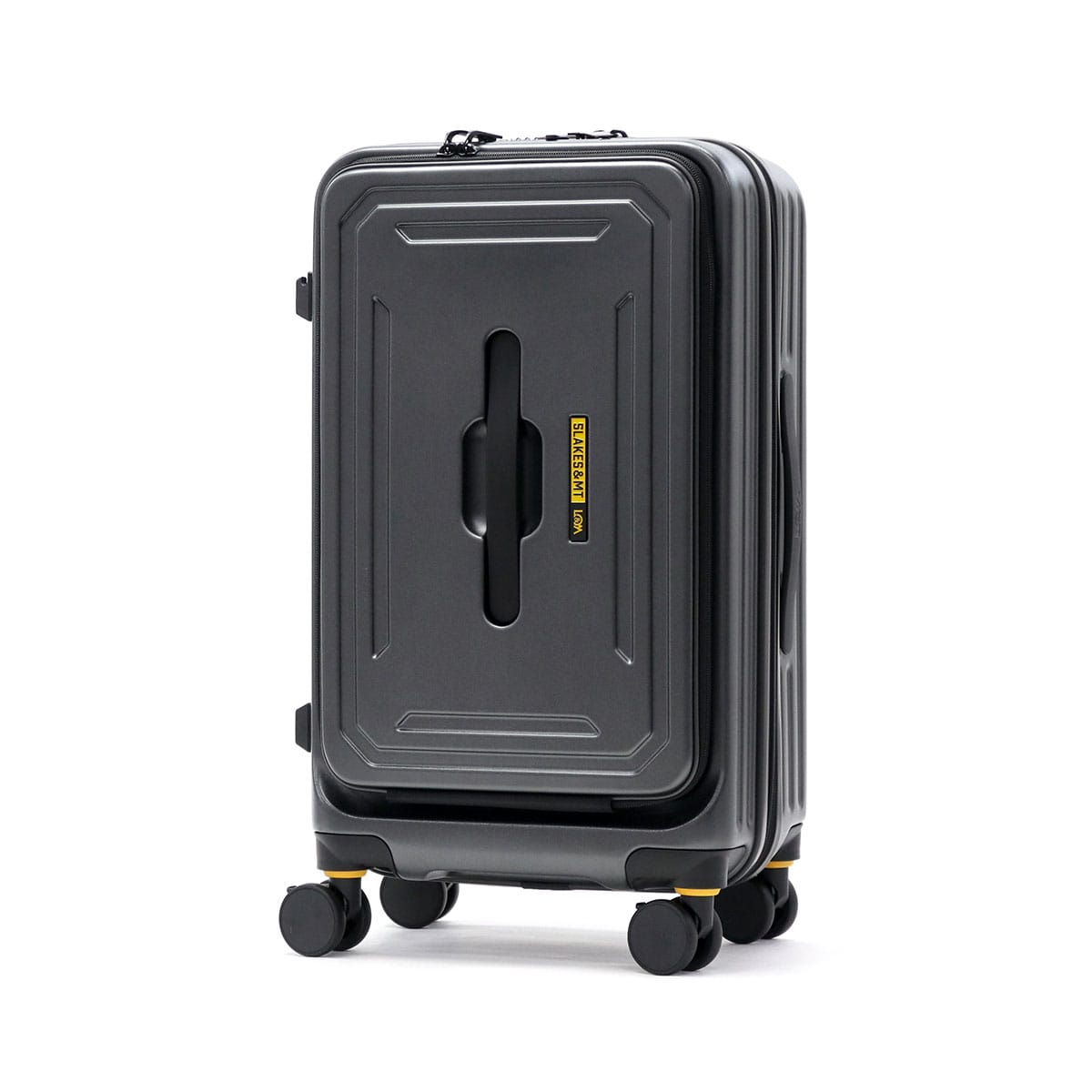 豊かな美しい自然が広がる富士五湖をベースとして誕生したブランド『5LAKES&MT/ファイブレイクス&エムティー』。アクティブでタフなイメージのトラペゾイドライン(台形型ライン)が特徴であるこちらのスーツケースは、45~54Lの容量に拡張可能なサイズ。フラット設計のキャリーバーや、前輪にはキャスターストッパー、側面には小物や袋がかけられるハンギングフックを備えるなど使いやすさにこだわった機能が充実しています。