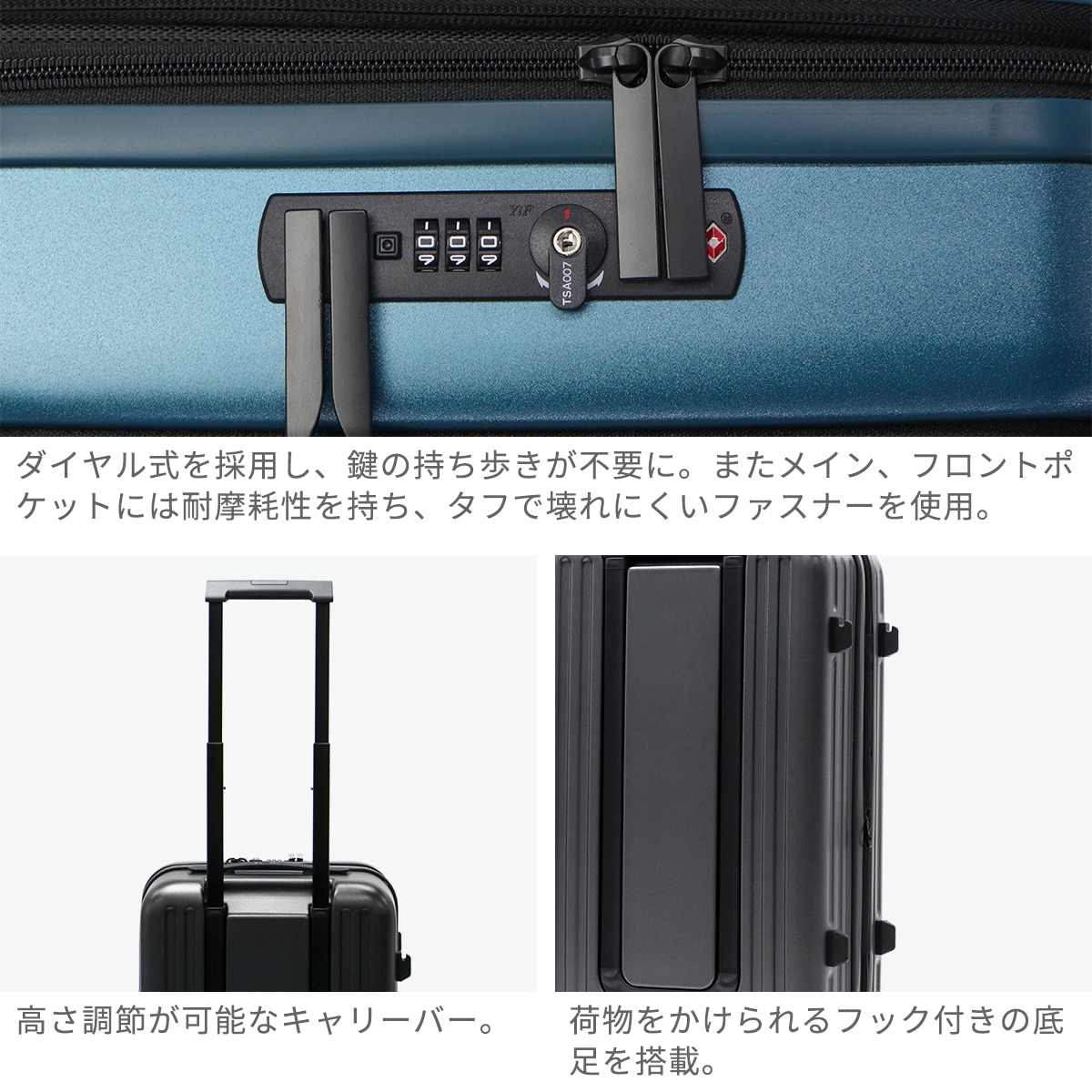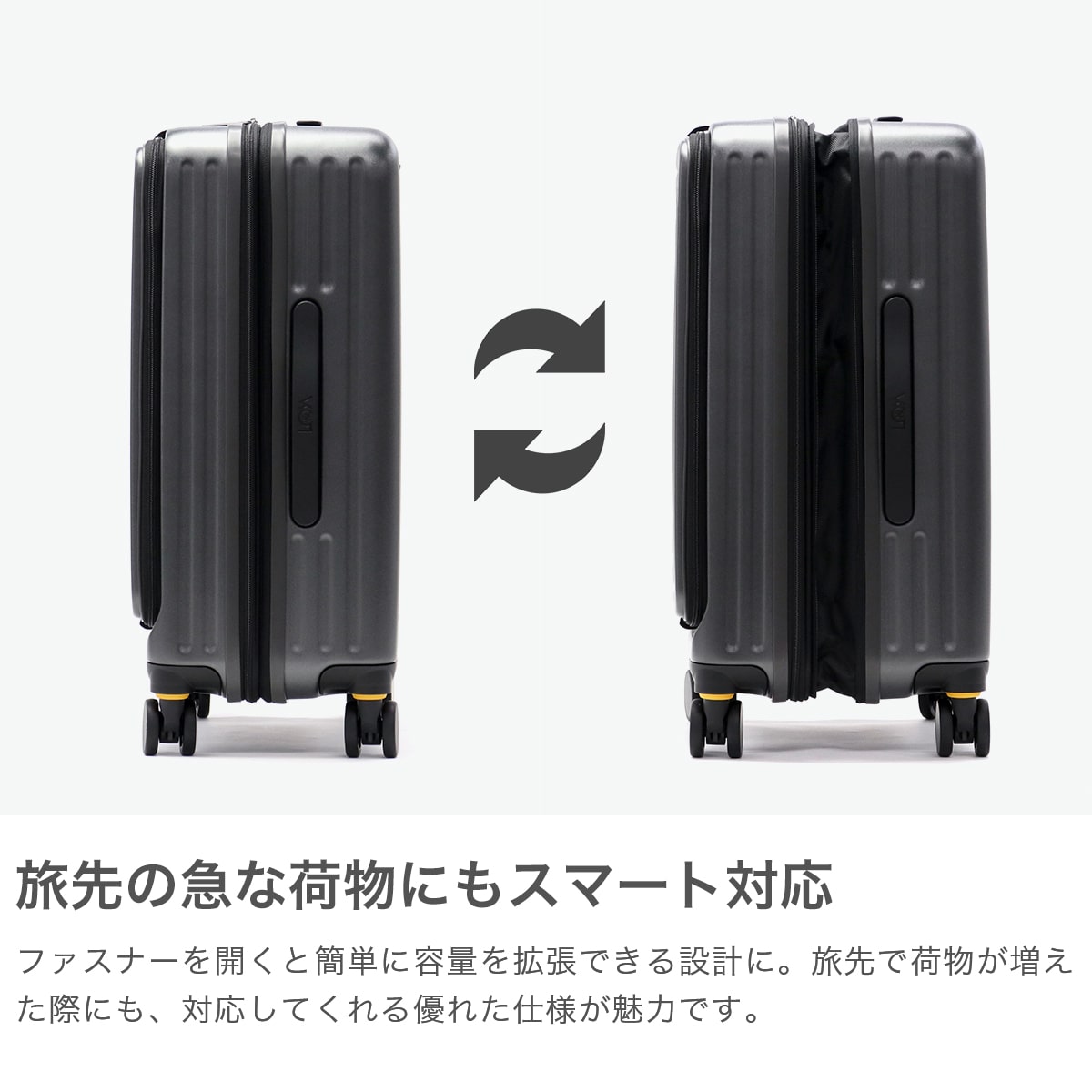 ・エキスパンダブル機能付きの製品は、マチ拡張時の3辺の和が機内持ち込みサイズ、預け入れ無料サイズを超える場合がございます。また、航空会社や飛行機の機種などによって規定が異なりますので、予めご確認の上お求めください。