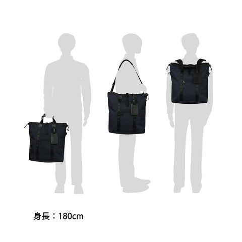 荷物量や使うシーンに応じて、トート・リュック・ショルダーの3つのスタイルを自由に使い分けできる3WAY仕様。リュックストラップ不必要時は、本体背面のポケットに収納することができるので、常にすっきりとしたシルエットでお使いいただけます。