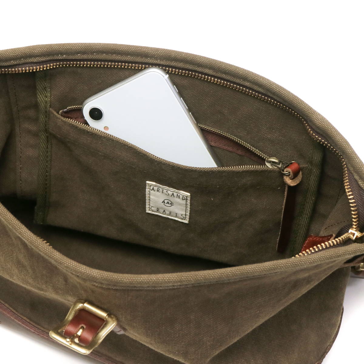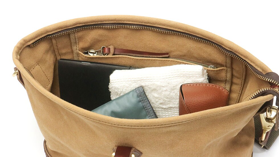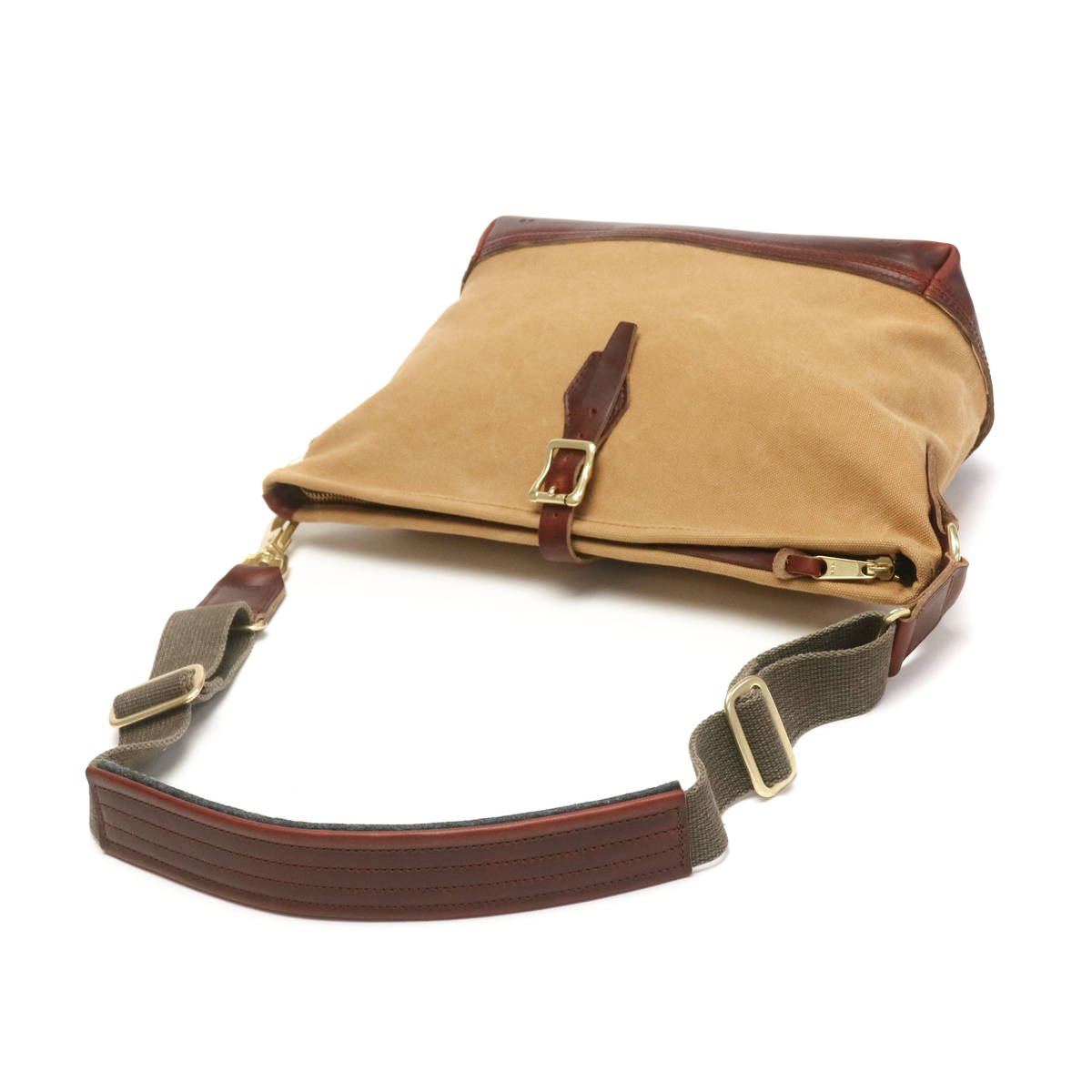 味わいのある素材と温かみのあるデザインで長く愛用できる『AGING CANVAS』シリーズのショルダーバッグ。気軽に持ち出せるサイズ感と落ち着いた表情で、休日のお出掛けにもデイリーユースにも使いやすいアイテムです。