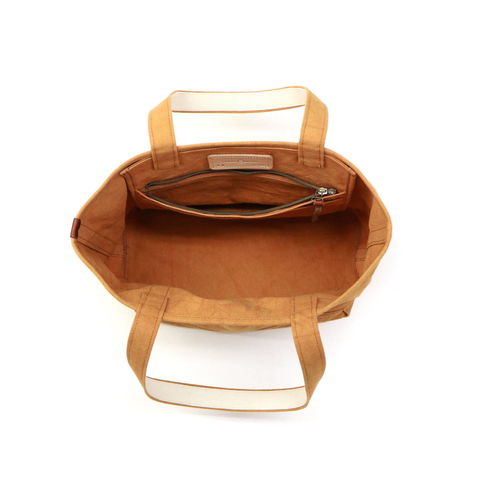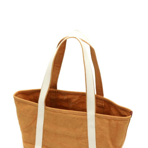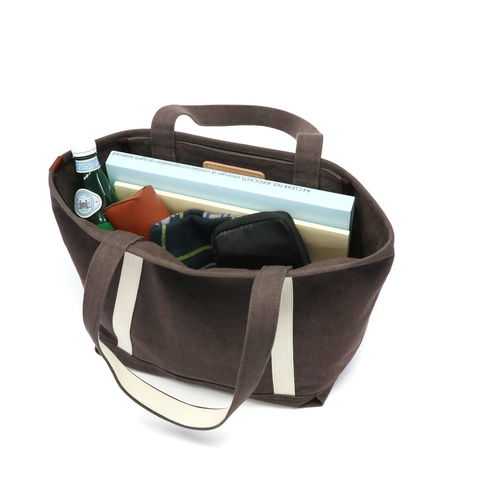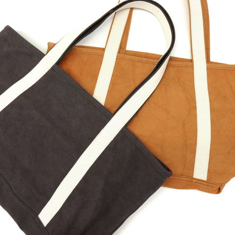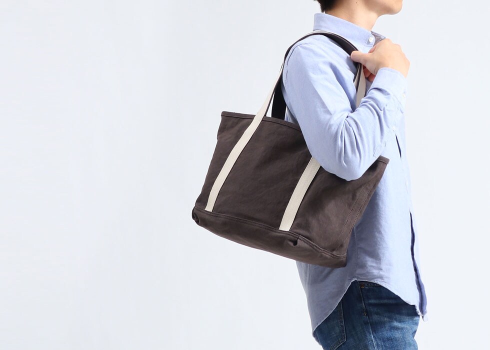 同シリーズの『BASIC TOTE』よりも一回り小さいサイズ出しをした『BASIC TOTE M』。レザーの量は少なく、帆布も薄手のものを使用して軽量化を実現。くったりとした素材感と均一性のないシワや染料溜まりにあたたかみを感じる、味わい深い表情の仕上がりです。