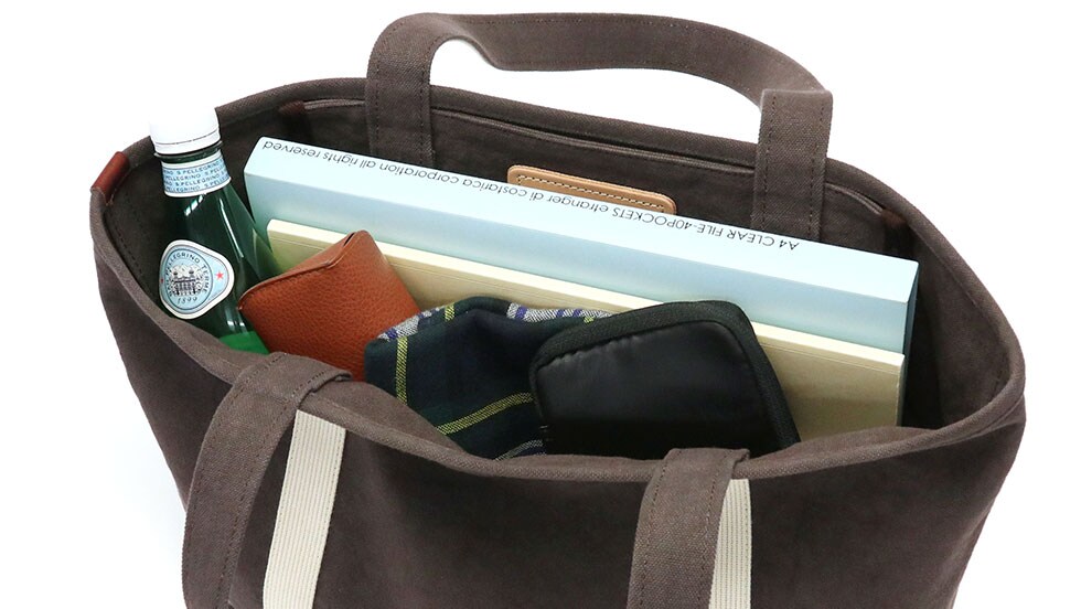 本体はA4対応で普段使いに丁度良く、必要なアイテムをざっくりと収納していただけます。小分け用ポケットもしっかり備えているので、小物アイテムがバッグの中で紛れることなく、仕分けて管理しておけます。