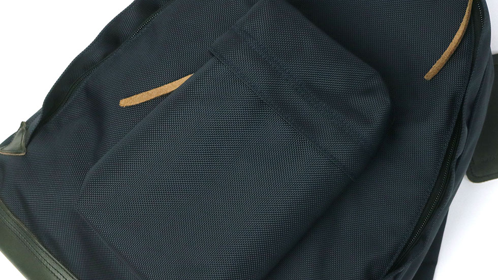 メイン素材にはINVISTA社の『1680D/N CORDURA BALISTIC NYLON』を採用。強度は通常のナイロンの7倍以上で、コーデュラナイロンの中で最も糸が太く強度に優れています。付属革には、水に強く長い間アウトドアブーツに用いられてきた「クロームエクセル革」を使用。色落ちしにくい堅牢度の高さが特徴です。