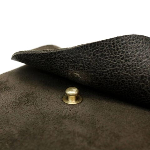 生地には、アフリカに広く生息するウシ科の動物『KUDU/クードゥー』の革を採用。吟面は野生生活でついた傷が非常に多く刻まれているのが最大の特徴で、床面はキメの細かい上品な起毛のスエードとなっています。その床面を本体表側に使用し、思わず触りたくなるような滑らかな質感に仕上げています。