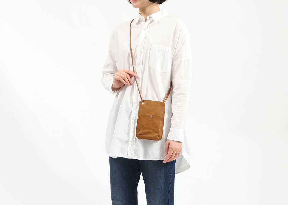 お出掛けの際の必需品の携帯に便利なミニショルダーバッグ。風合い豊かなレザー1枚で仕立たシンプルなデザインは、愛着を持って永くご愛用できます。実用性とデザイン性を兼ね備え、身軽に外出したいシーンに外せないアイテムになっています。