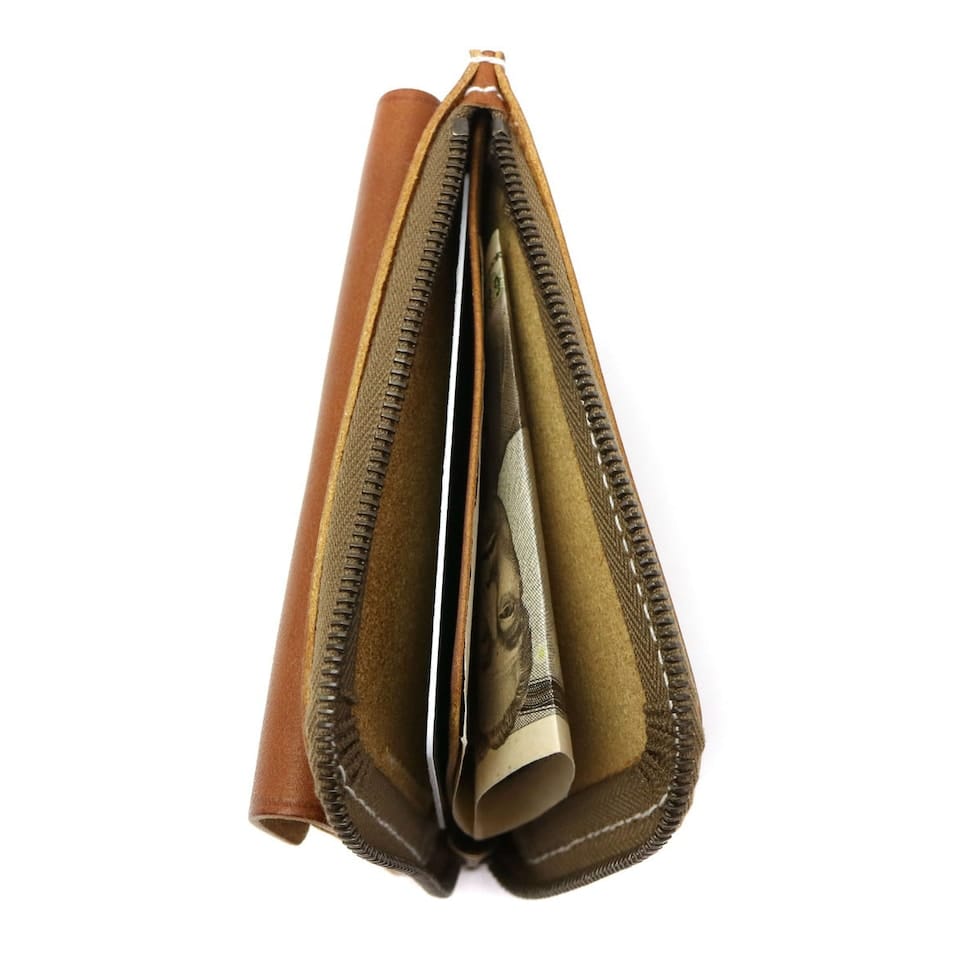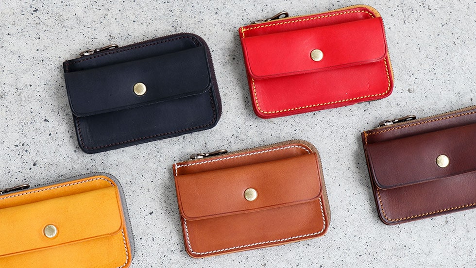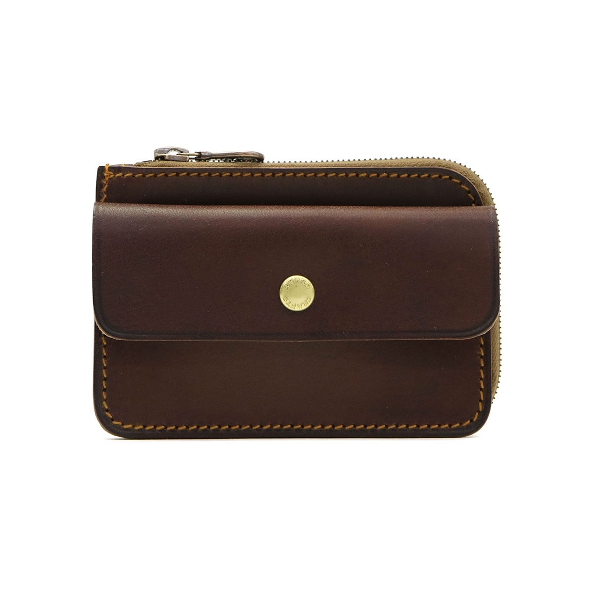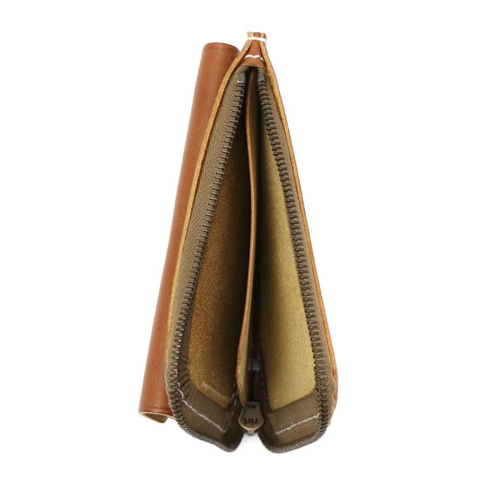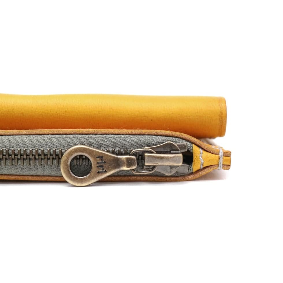 伝統的な皮革製造法で作られた革素材を使用した、ナチュラルで癖になる柔らかさのL字ファスナーミニ財布。フロント部に大きく配置されたフラップの柔らかな曲線がポイントになっています。また、riri社のファスナーの引手には丸い穴が開いており、お手持ちのウォレットコードなどのフックの取り付けも可能。