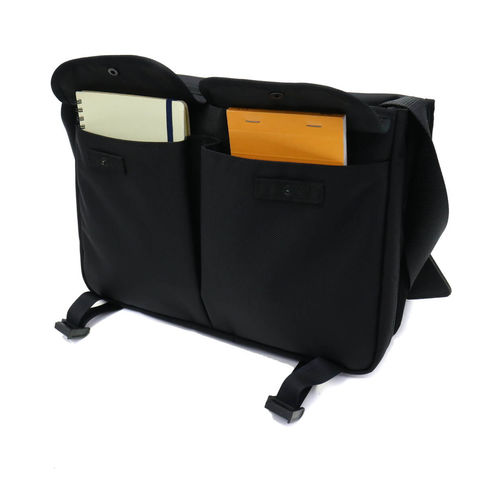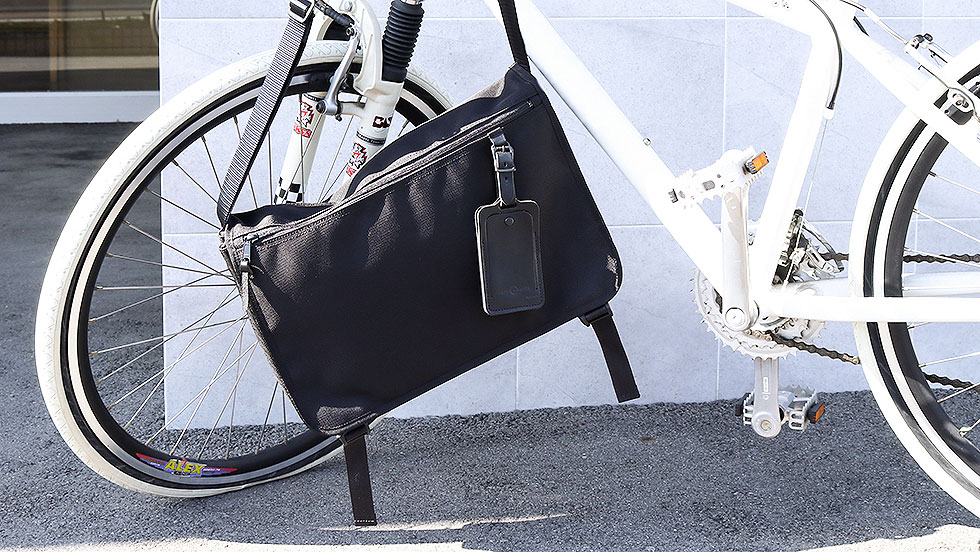 スタイリングに合わせやすいシンプルなメッセンジャーバッグ。デイリー使いはもちろんのこと、扱いやすいサイズ感でカジュアルな装いがOKなビジネスシーンにもおすすめです。自転車での移動時にスタイリッシュさをプラスしてくれるアイテムです。