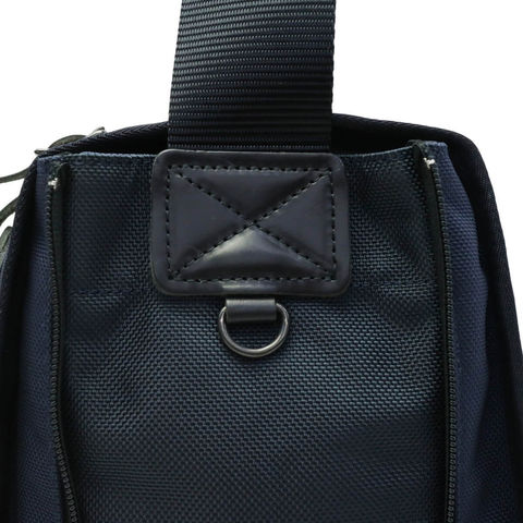メイン素材のナイロンは従来のものと比べ、約5倍の引き裂き強度を持ち、耐熱性にも優れた1680Dコーデュラナイロンを使用。全方面には、撥水加工を施しています。また、付属にはクロームエクセル革を使用し、オイル分を多く合浸してあるため、水に強い特徴があります。