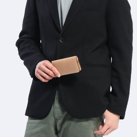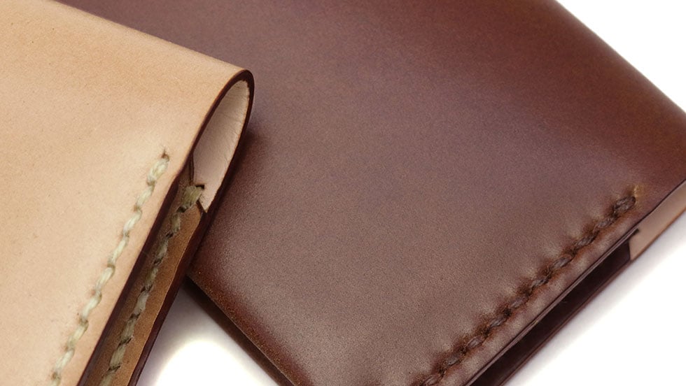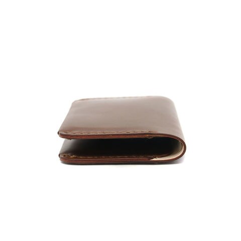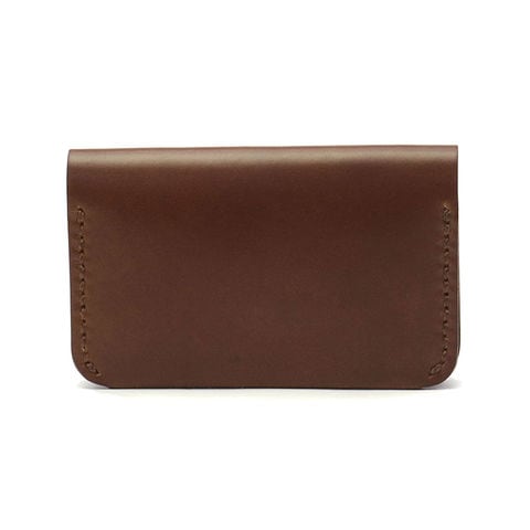 上品な仕立てが多いコードバンを、あえてクラフト感ある太番手の麻糸で丁寧に縫い上げた『HANDSEWN CORDOVAN ACC』シリーズの名刺入れ。革靴の一種であるペニーローファーのハンドソーンの縫い合わせをイメージして作られました。接ぎがない一枚の革で仕立てたシンプルなデザインが魅力です。