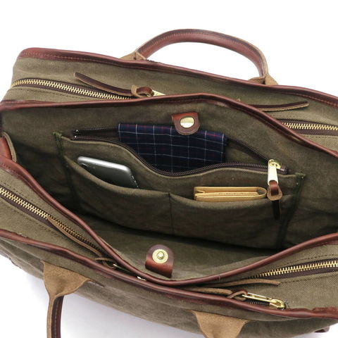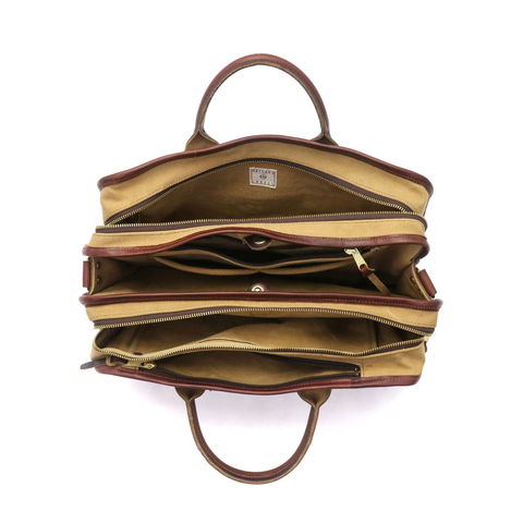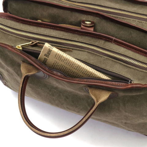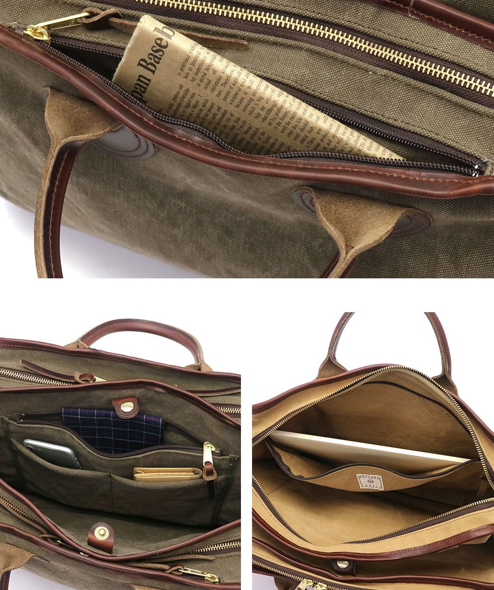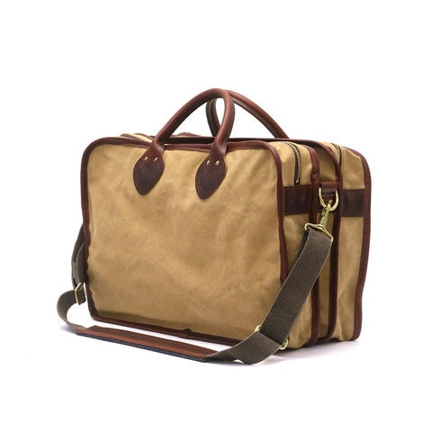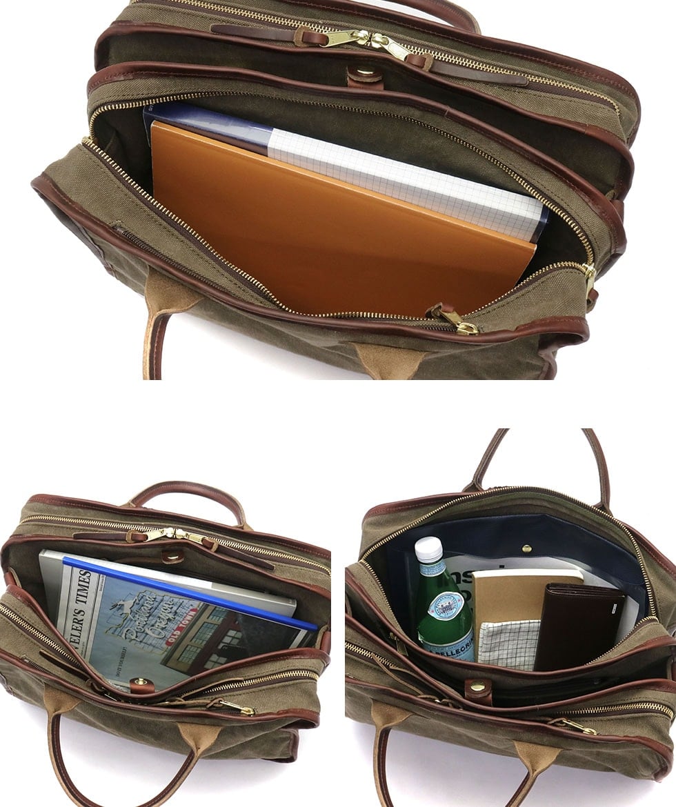 味わいのある素材と暖かみのあるデザインに、現代的な使い勝手とエコロジカルな素材感をプラスして、長年使えるバッグを目指した『AGING CANVAS』シリーズの3層式の2WAYブリーフケース。ユニークなデザインを持ち、高い収納力やポケットの充実さによって使用性も高められた秀逸なバッグです。