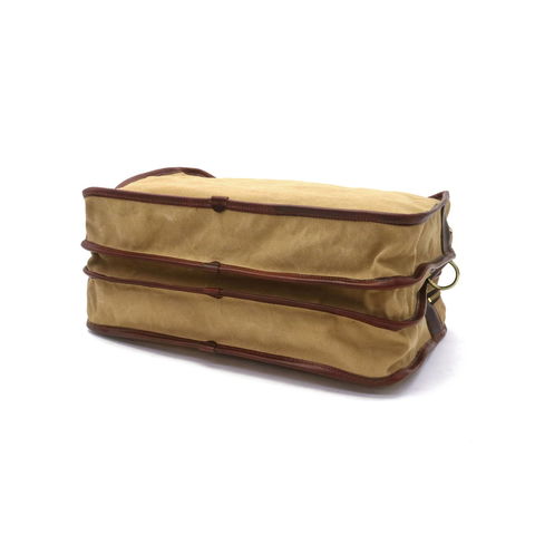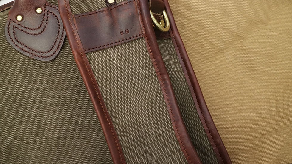 メイン素材には、ベジタブルタンニンで染められた6号帆布を使用。使い込むことで風合いが増していく味わい深い素材です。また、付属部分のレザーには、コードヴァンで有名なホーウィン社のクロムエクセルレザーを使用しています。オイルを豊富に含んでおり、柔らかく馴染みやすいレザーです。