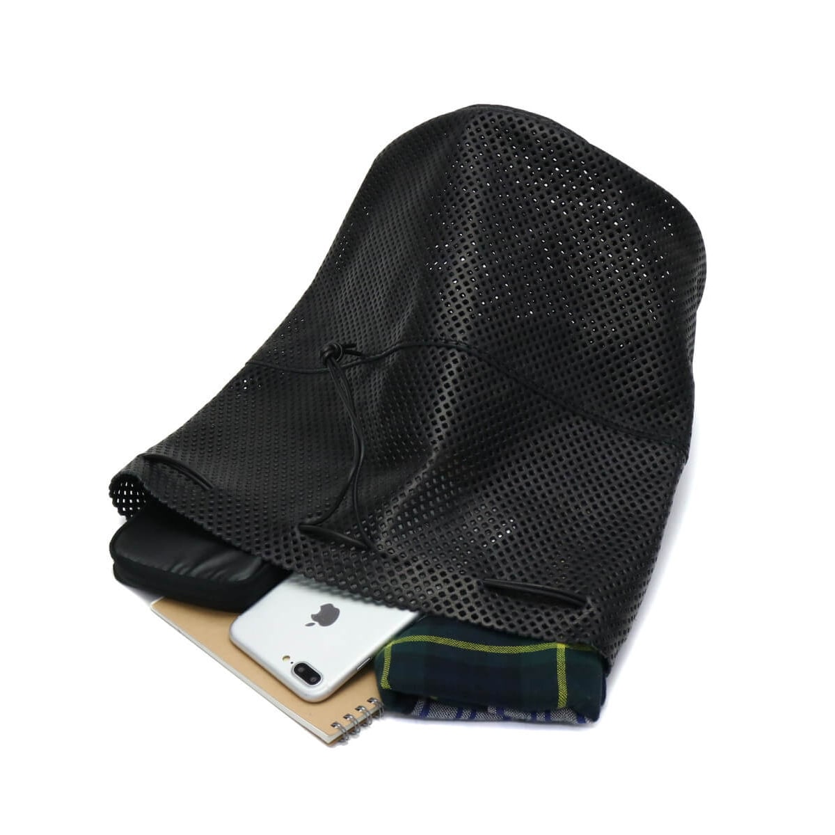 収納部はスマートフォンや財布、タオルなど日常的に使うアイテムの収納に最適。A5サイズがゆったり収まるので、手帳や500mlのペットボトルを仕舞っても余裕があります。シンプルかつ飽きのこないデザインに仕上がっています。