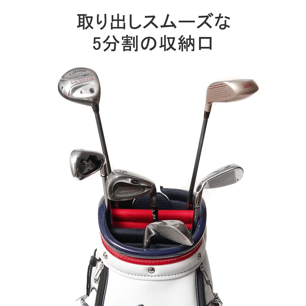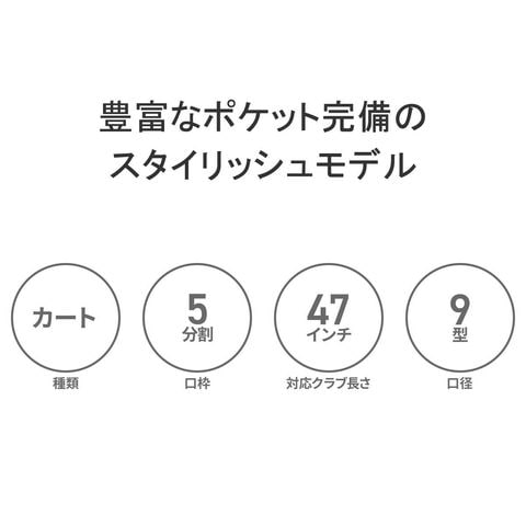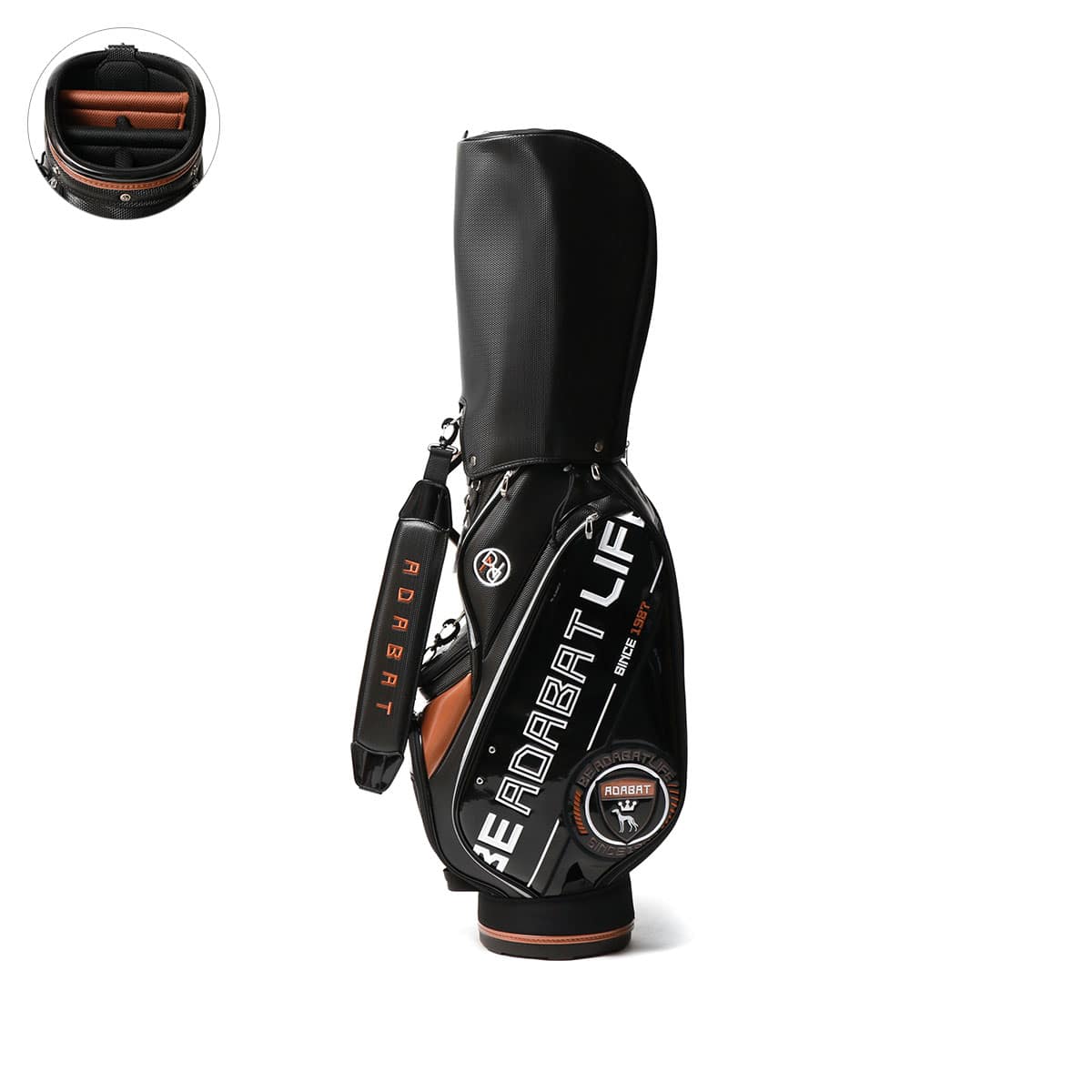 大人のアクティブな休日を、より上質で上品なワンシーンにするアイテムを展開する「adabat/アダバット」のキャディバッグ。47インチ対応の本体は、仕分けのしやすい5分割仕様。3.5kgと軽量で、豊富なポケットにより小物の収納に困らない設計です。スタイリッシュな4色展開のうち、限定カラーとなっているブラックにも注目です。