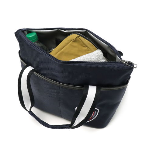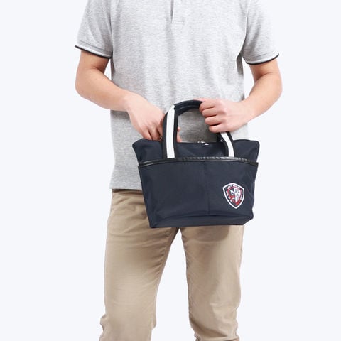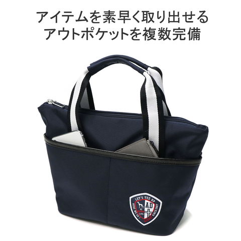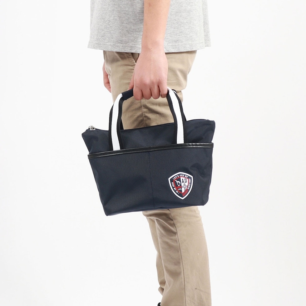 大人のアクティブな休日を、より上質で上品なワンシーンにするアイテムを展開する「adabat/アダバット」のカートバッグ。フロントのロゴワッペンとハンドルデザインがアクセントになった、カジュアルな雰囲気が漂うアイテムです。素材にハリのあるナイロンを用いたしっかりとしたつくりで、防滴仕様の裏地もポイント。収納部はA5サイズに対応し、内外には大小4つのポケットを完備しているので、ラウンド小物をコンパクトにまとめて持ち運べます。