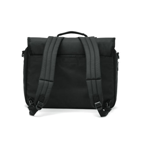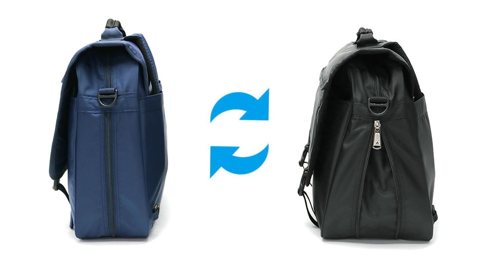 手持ちでサッと持ち出したり、ショルダーやリュックスタイルで身軽に行動できる3WAY仕様。荷物量や移動手段によって自由に持ち方を選べます。リュックストラップは背面のポケットに収納可能です。