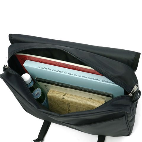 すっきりと見通しの良いメインルームには、底板を備えているので荷物の収納もしやすくなっています。フラップの外ポケットはジップ開閉にすることで、荷物の飛び出しを防ぎます。小分け収納のポケットが備わり、荷物を綺麗に整理することができます。