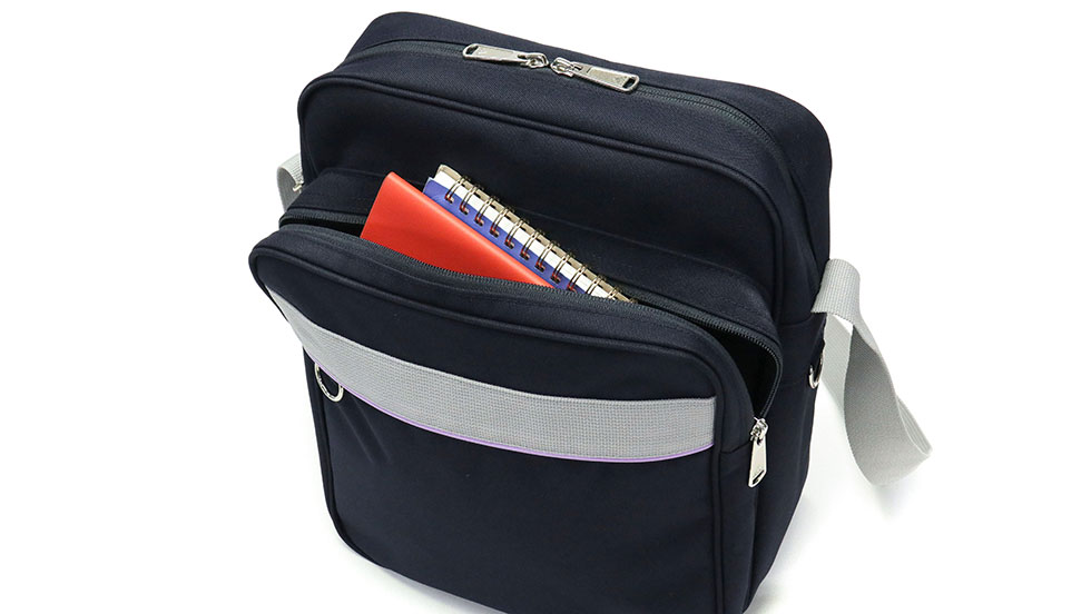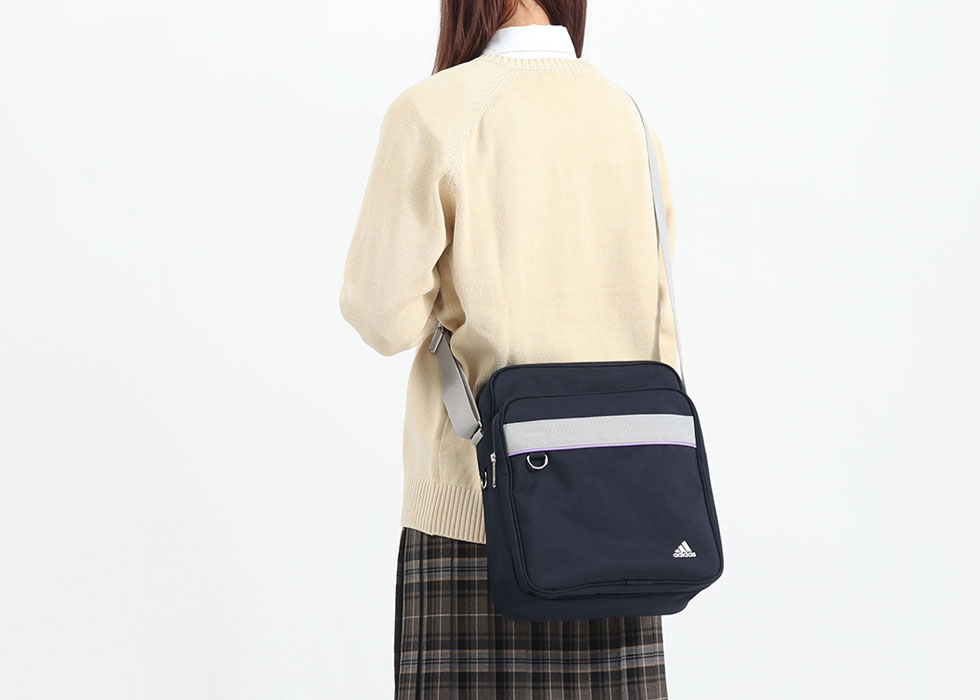 制服コーデにおすすめのショルダーバッグ。大き過ぎず、でも程良く収納力を備えていて、メインバッグとしても放課後用のサブバッグとしても便利なバッグ。本体正面のDカンにお気に入りのキーホルダーを付けて、自分だけのオリジナルデザインにするのもおすすめです。