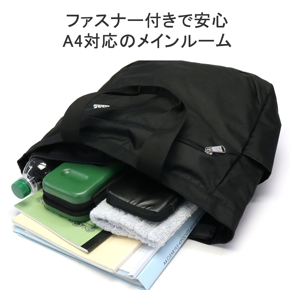 本体はA4サイズが縦にも横にも収まるサイズ感。ノートやファイル類がすっきり収納できます。外側には、飲み物類の持ち運びに便利なサイドポケットに加え、使用頻度の高いアイテムがスムーズに出し入れ可能な、広めのジップポケットも装備。荷物がたっぷり入るうえ、小分けの収納も充実し、通学や部活の際のサブバッグとしても重宝する仕上がりとなっています。