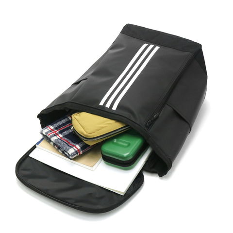 大人気スポーツブランド『adidas/アディダス』のシンプルかつスポーティなリュックサック。本体はスクエア型のフォルムに、マチ幅をたっぷりと設けた仕様。持ち運びの安定感を高めつつ、スペースを余すことなく活用できる設計が特徴です。またブラックをベースにスタイリッシュな3本のラインを施した外観には、制服コーデはもちろん普段のカジュアルな服装にもマッチする万能なデザインに仕上がっています。