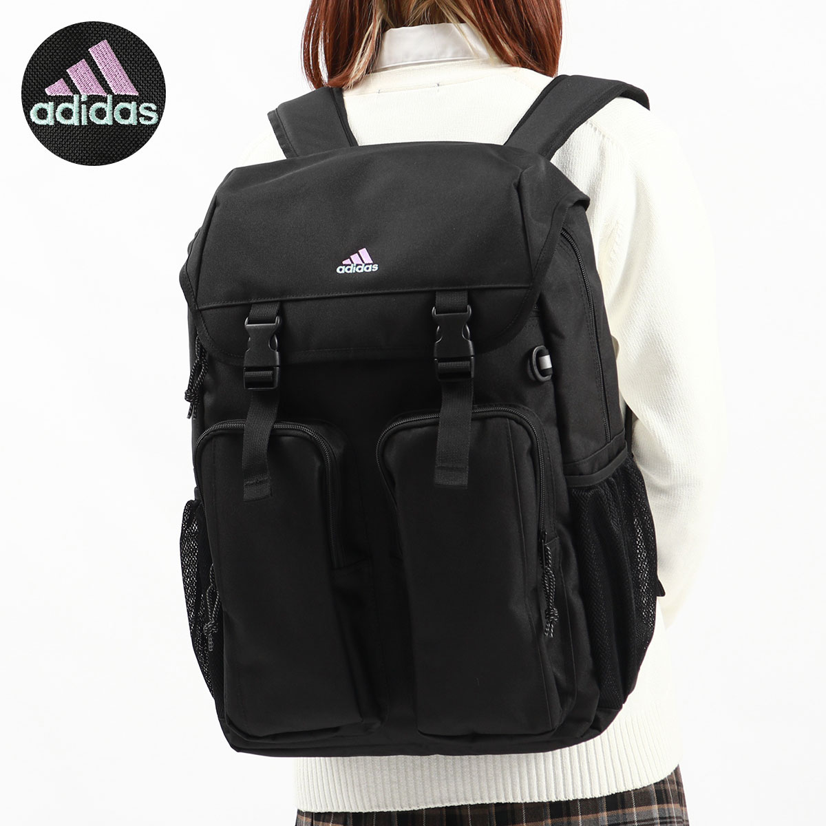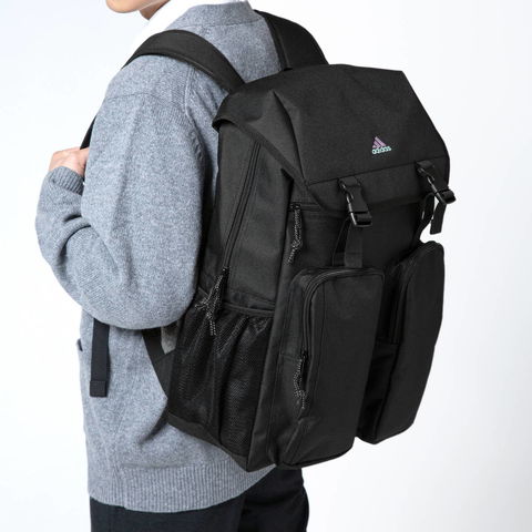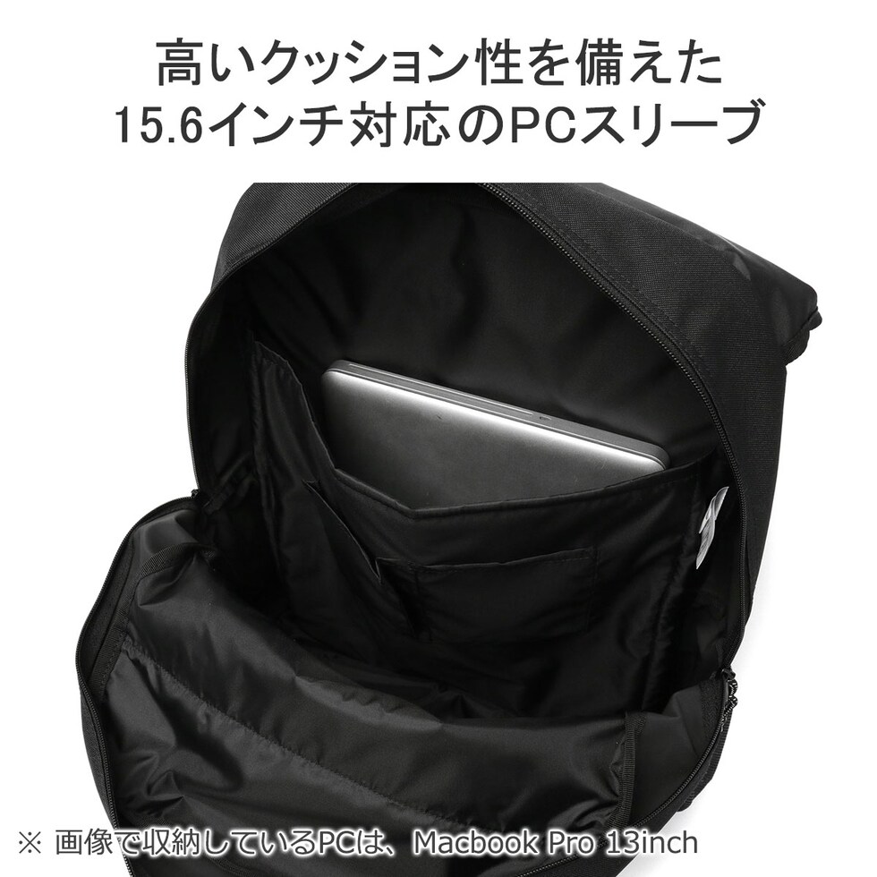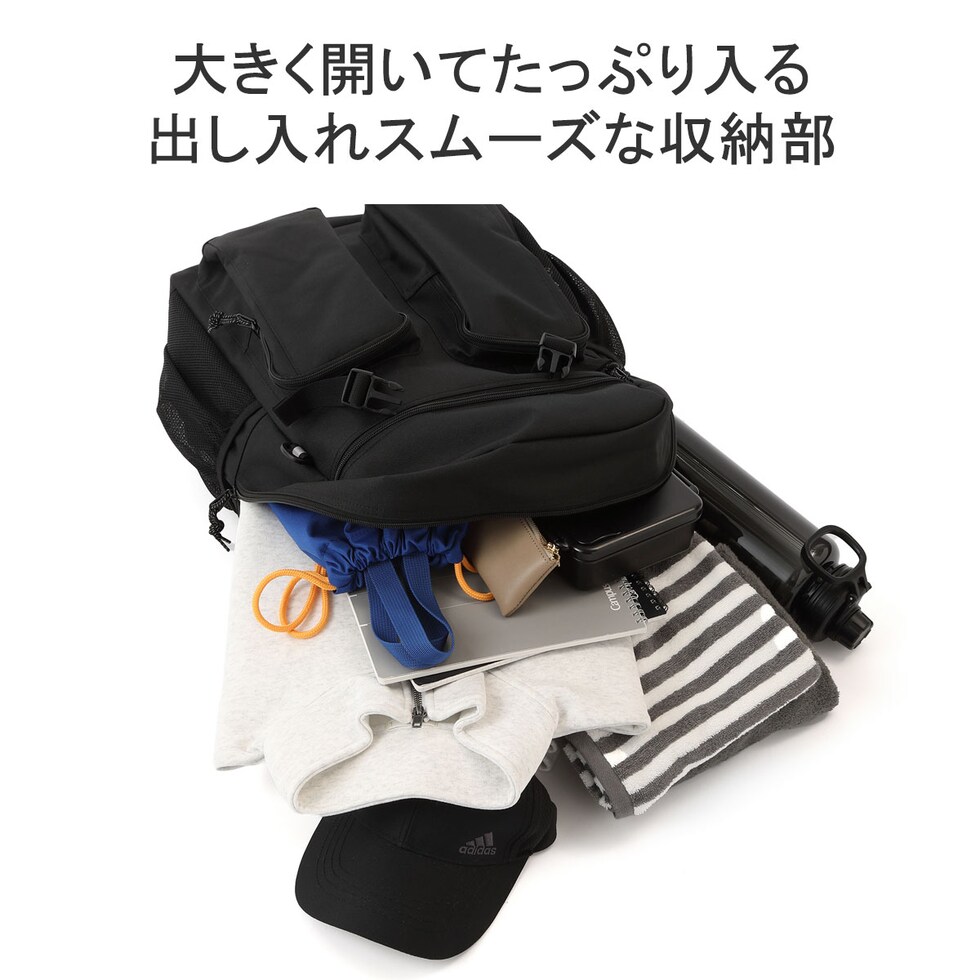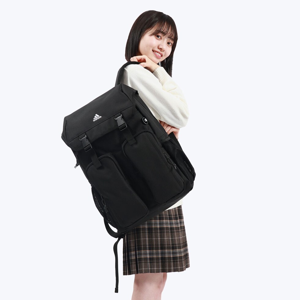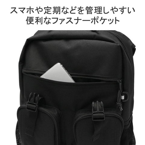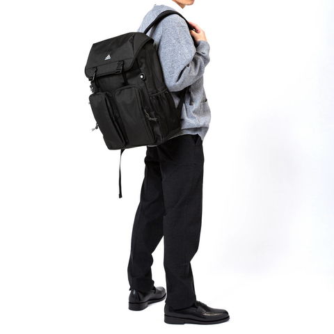 バックル開閉式のフラップがデザインのポイントになった、32L容量のバックパック。B4サイズに対応した収納部は、15.6インチまでのノートPCが収まるスリーブ付き。外側正面に備えたユーティリティポケットは、すぐに取り出したいスマホなどのアイテム管理に最適です。耐水性、耐久性に優れたコーティング素材を採用し、通学や部活などのスクールシーンにピッタリなアイテムとなっています。