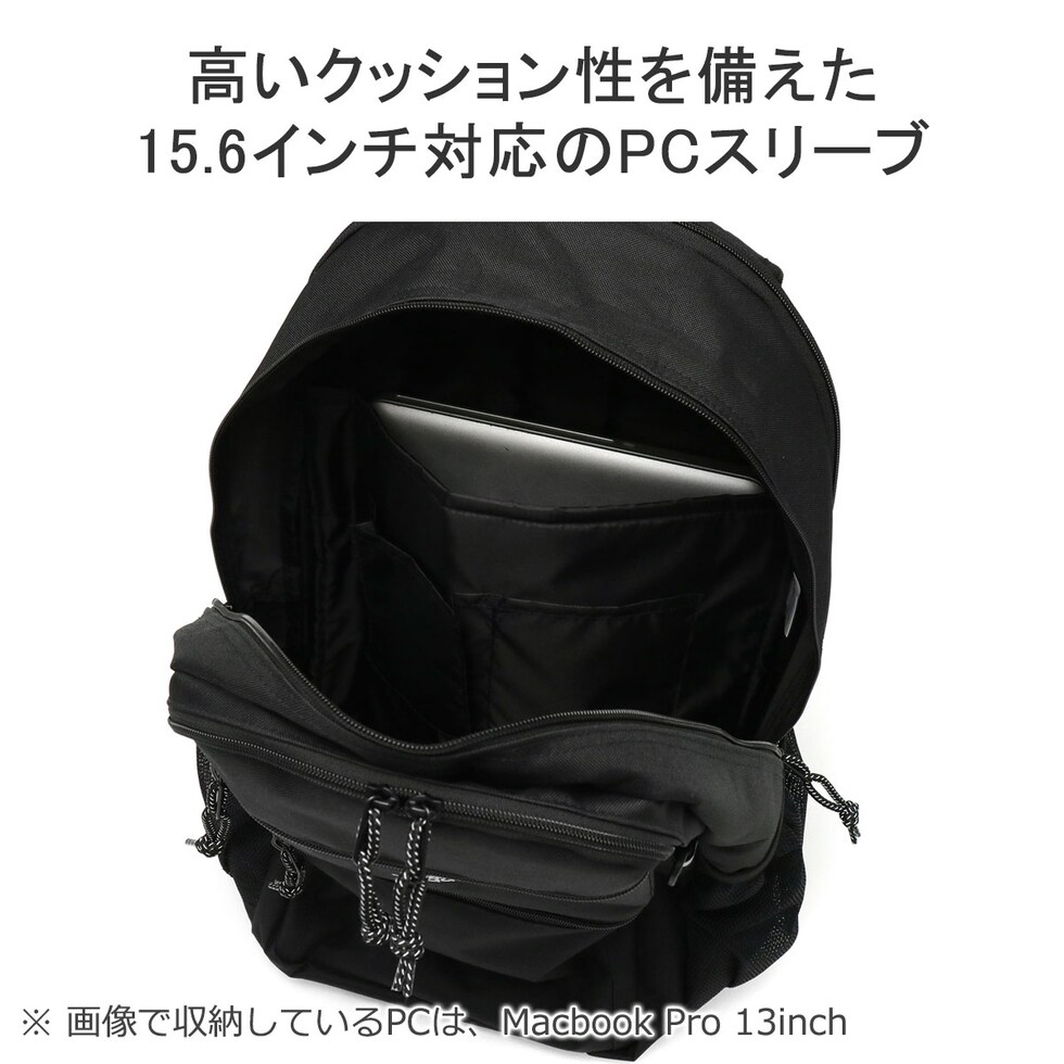 シンプルなルックスながら、使い勝手の良い機能を搭載したバックパック。収納部はA4サイズがゆったりと収まる大きさで、荷物の仕分けがしやすい2気室タイプ。さらに本体はマチ拡張機能を備えており、サイドのファスナーを開くことで31Lから35Lへ容量アップが可能です。耐水性、耐久性に優れたコーティング素材を採用し、通学や部活など毎日のヘビーユースに活躍するタフな仕上がりも魅力となっています。