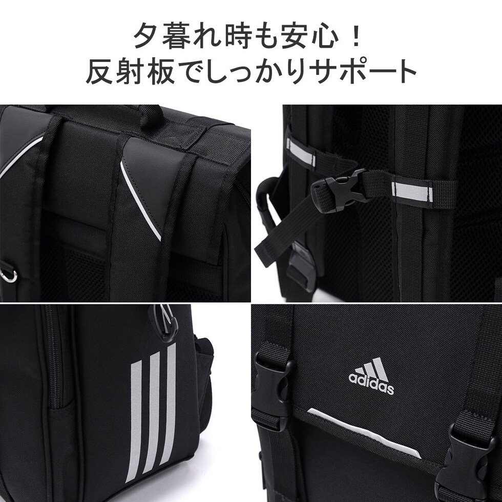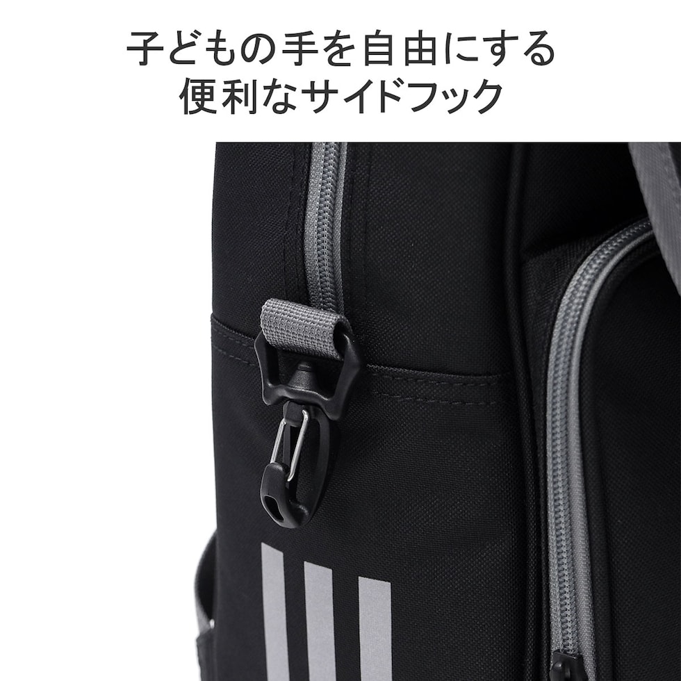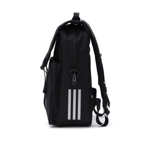 サイドに映えるアディダスのスリーストライプスが特徴のリュックサック。半かぶせのフラップデザインが、スタイリッシュさと機能性を兼ね備えています。メイン収納部は大きく開き、荷物の出し入れがしやすい設計です。内装のPCも収納可能なポケットは底部から1cm浮かせて衝撃を緩和し、マジックテープでPCを2段階に固定可能。A4サイズのノートや教科書も収納できるため、通学、塾、習い事など幅広いシーンで活躍します。