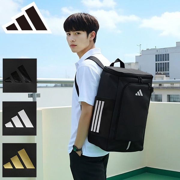 アディダスの大容量リュック「メルドルフ」シリーズの、スタイリッシュなスクエア型バックパックです。約30Lの収納力を備え、通学や部活動、クラブ活動など、日常のさまざまなシーンで活躍。耐久性に優れたコーディング素材を採用しており、日々のタフな使用環境にも適した信頼性の高いアイテムです。