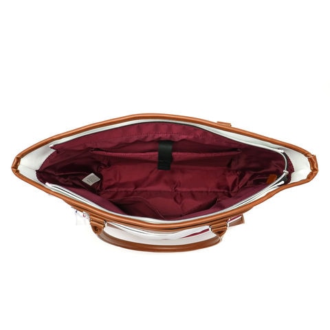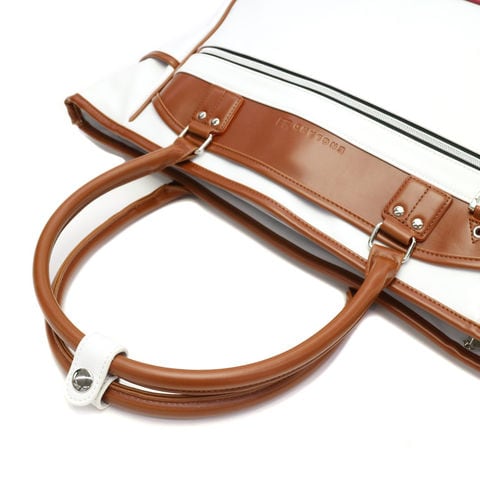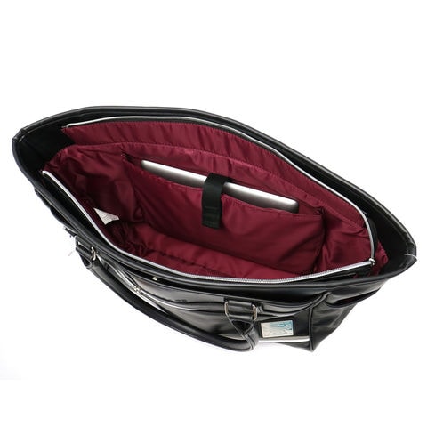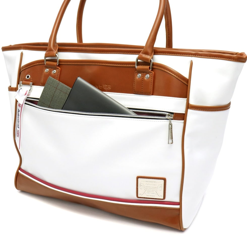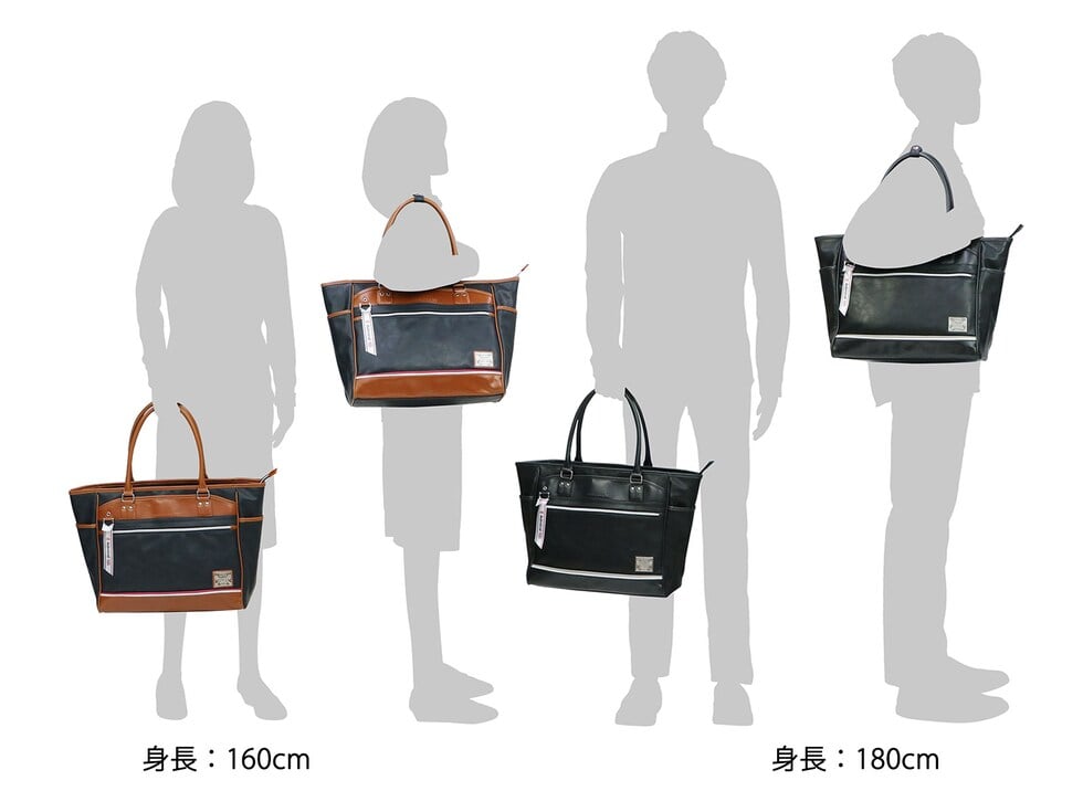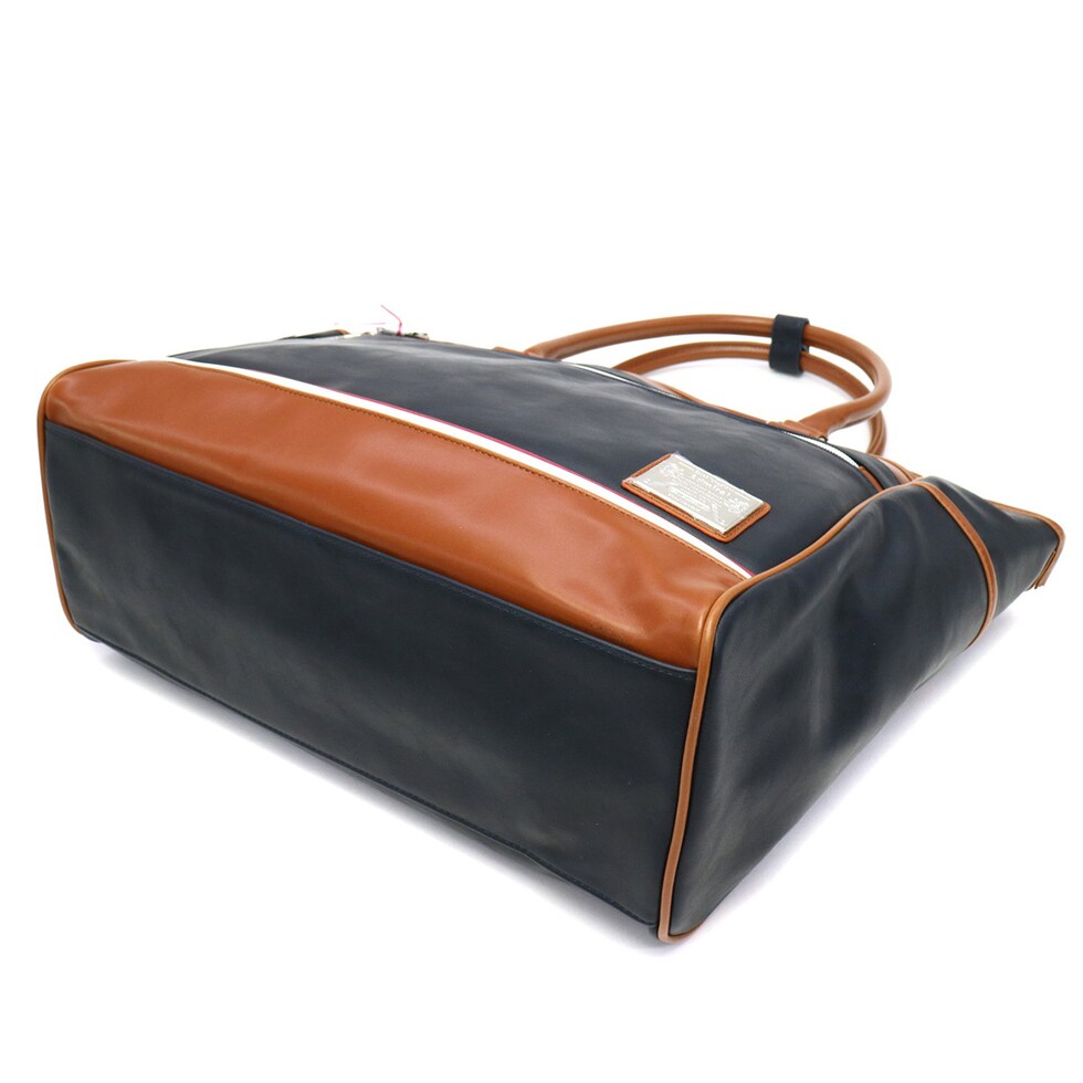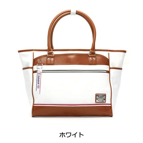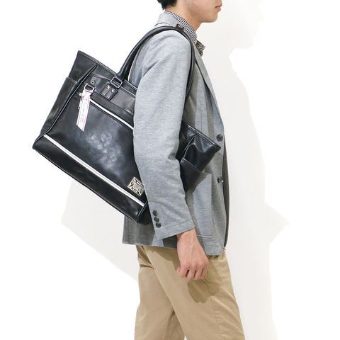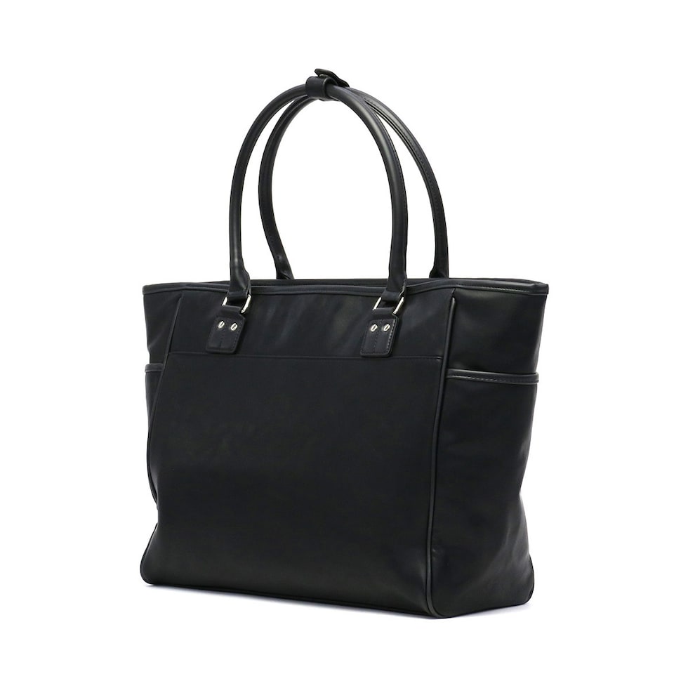 ジャケットスタイルにぴったりなハリのある合成皮革を使用したトートバッグです。艶やかで上品な質感と、高級感のあるフロントのメタルプレートがマッチし、英国を感じられる仕上がりになっています。ジップ開閉式で通勤や通学にもぴったりなデザインです。
