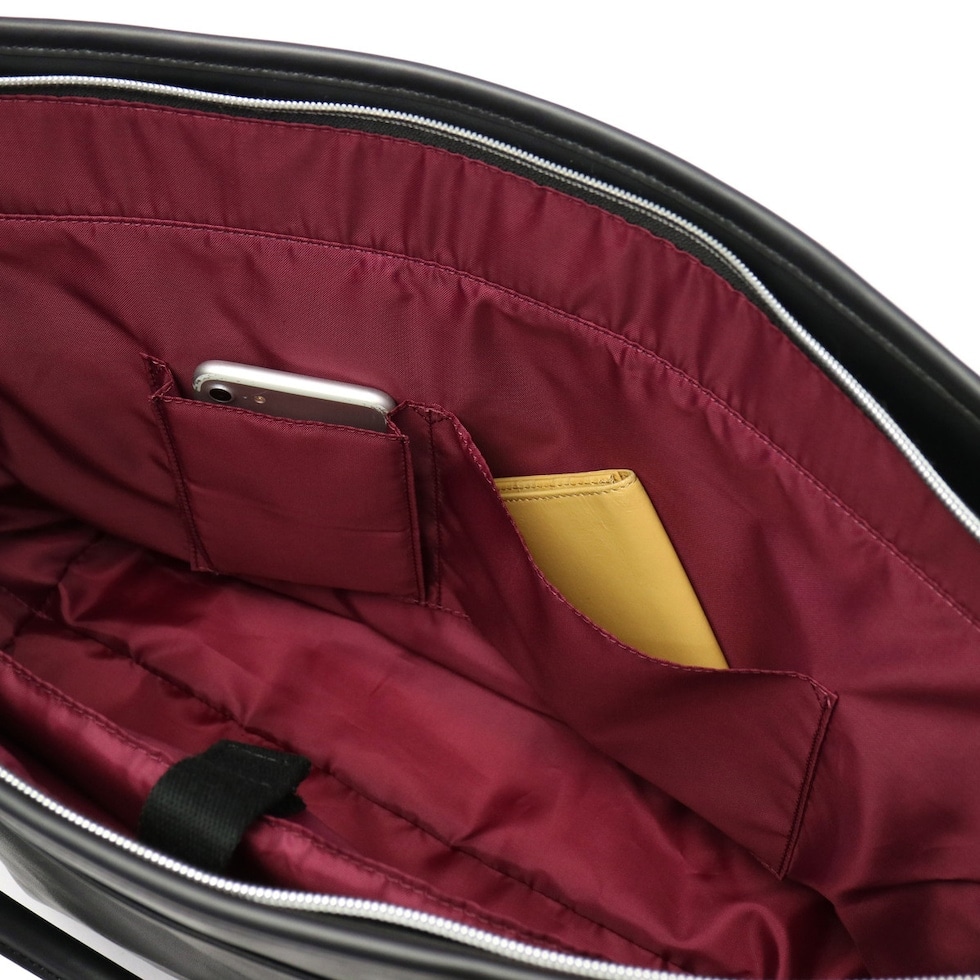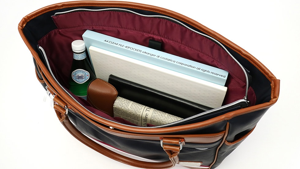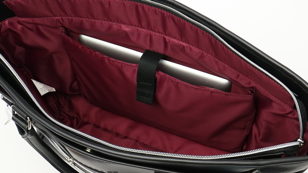 メインルームはA4サイズに対応しており、書類やファイルなどのビジネスアイテムも収納可能です。収納口はジップ開閉式なので、荷物の零れ落ちを防ぎ、プライバシーも保護してくれます。