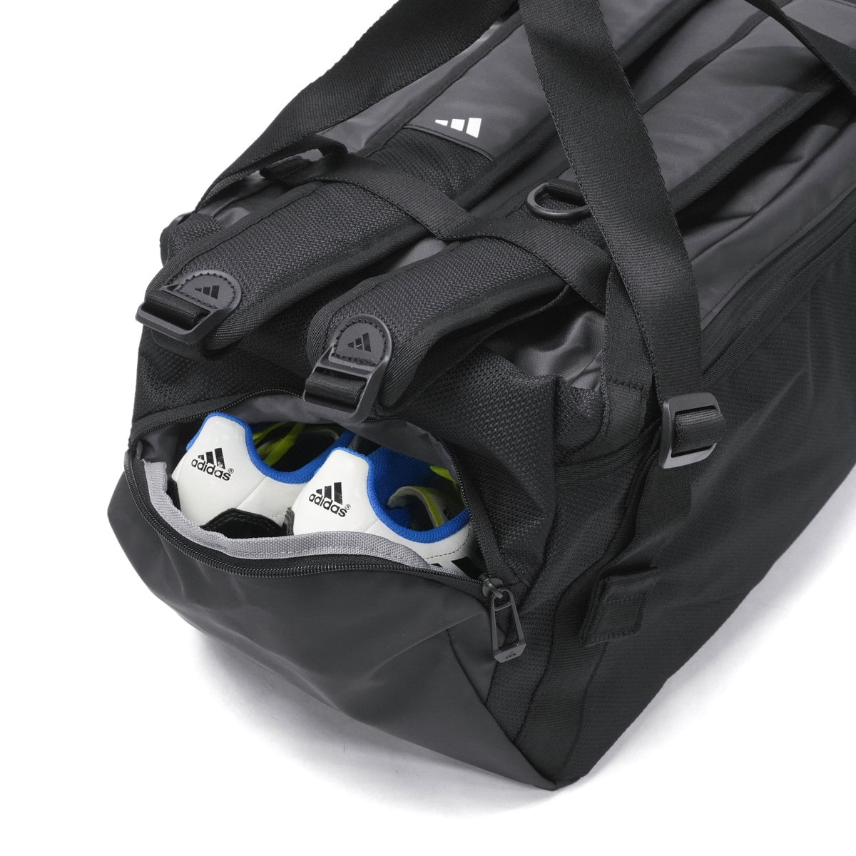 アスリート・部活生のためのシリーズ「EP/Syst.(イーピーエス)」の35Lダッフルバッグ。CORDURAとTPU素材を組み合わせ、優れた耐久性を実現しています。開口部が大きく開くためパッキングもスムーズ。外からアクセス可能なシューズ収納部を備えており、仕分けして清潔に持ち運べます。シーンに応じてバックパックとしても使える2WAY仕様で、日常を多機能かつタフにサポートします。
