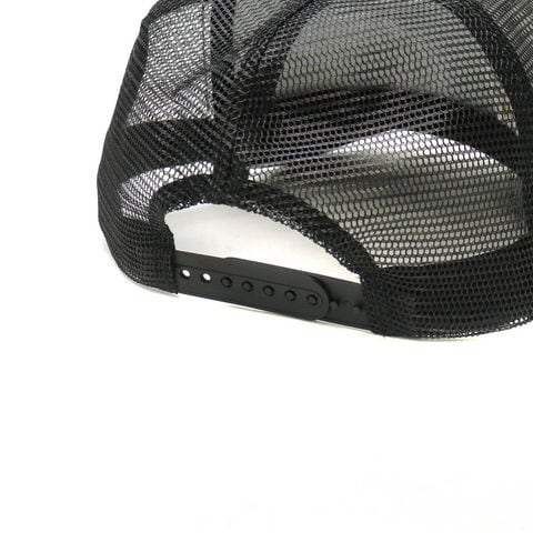 フロントのボリューム感のあるロゴ刺繍がポイントのメッシュキャップ。ミリタリーライクなデザインにインパクトのあるロゴ刺繍が映え、コーディネートのワンポイントになる仕上がりです。大きめのサイズ感で、背後にはアジャスターも装備しているのでサイズ調整も可能です。