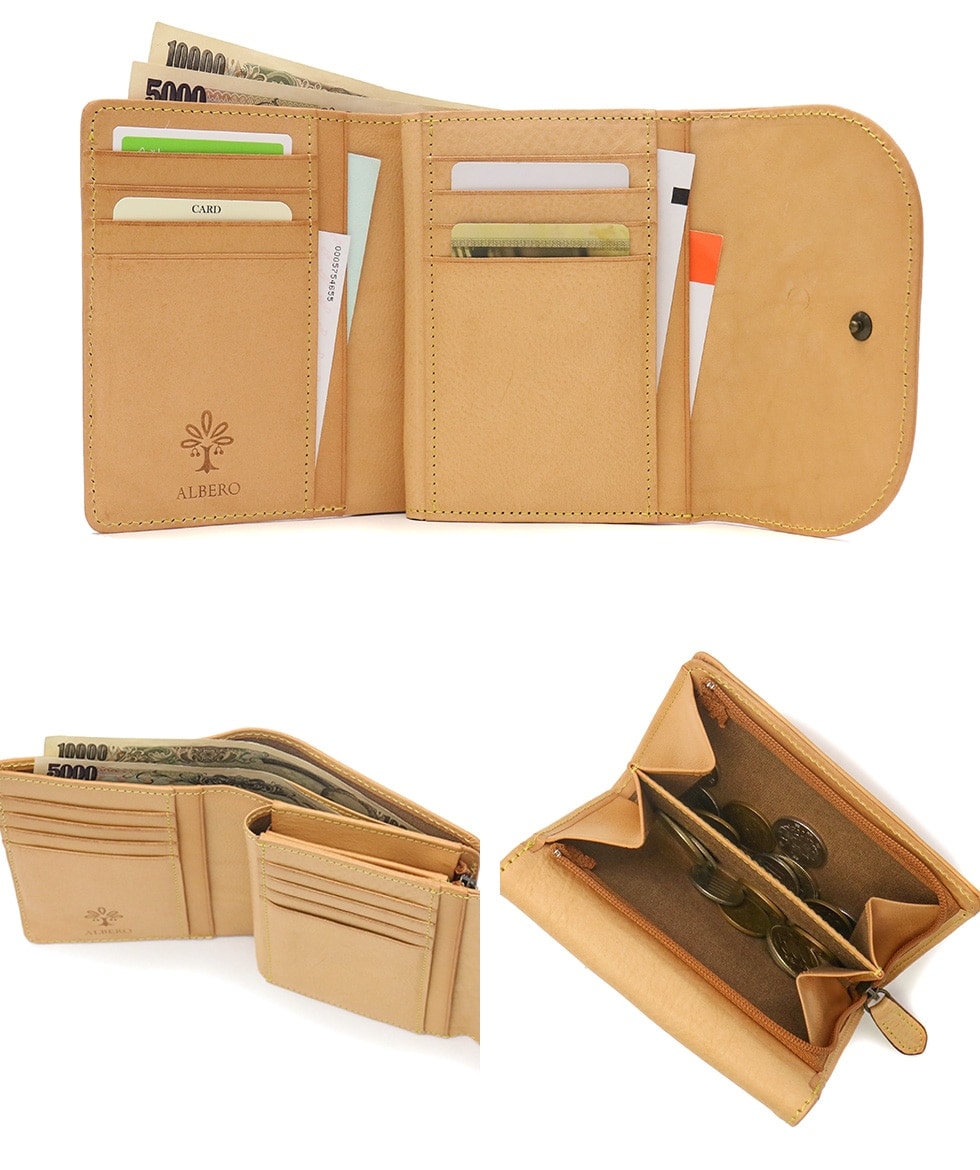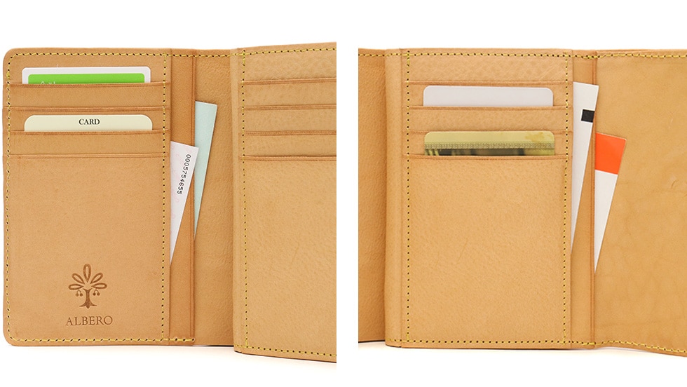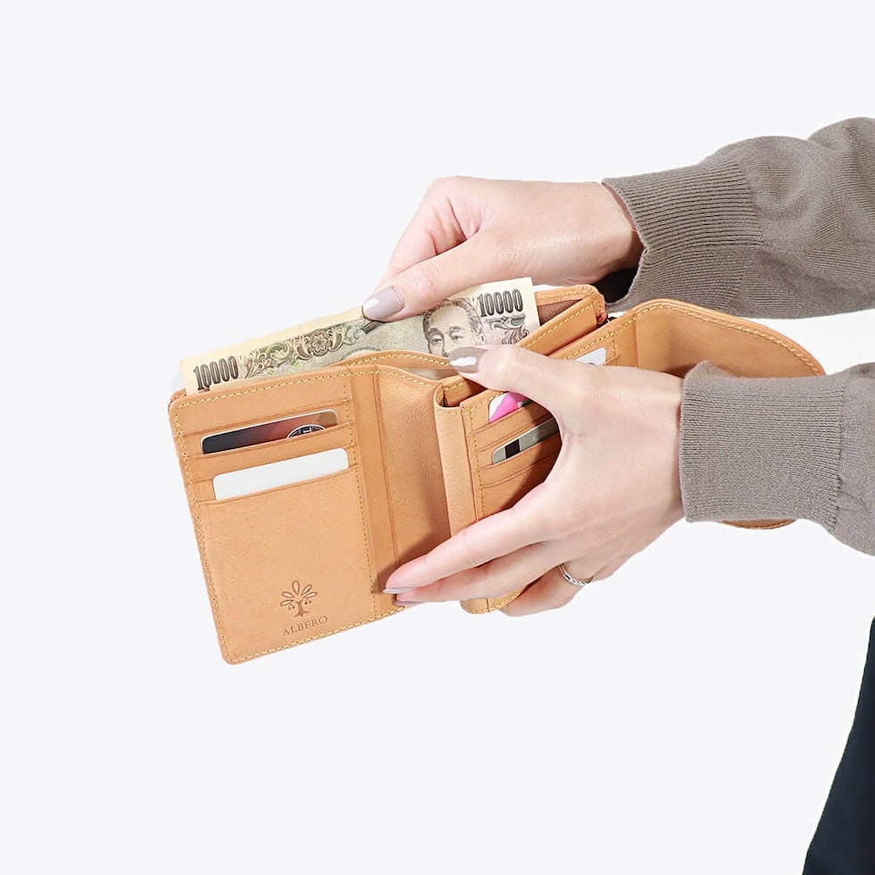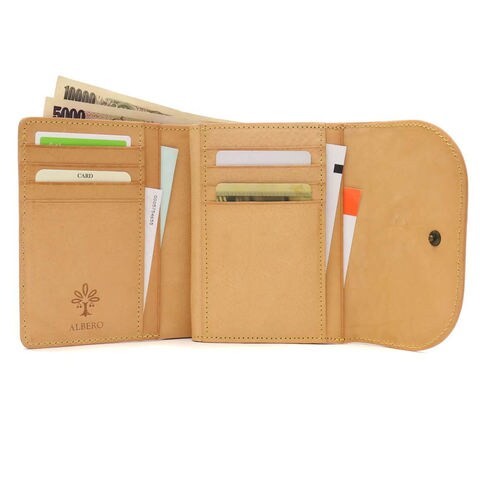 「自然を大切に」と思うデザイナーがイタリアや日本の職人と作り上げたALBERO。そのフィロソフィーを象徴する『NATURE/ナチュレ』シリーズの二つ折り財布です。コンパクトながら長財布にも劣らない収納力を備えた使い心地のいいお財布です。