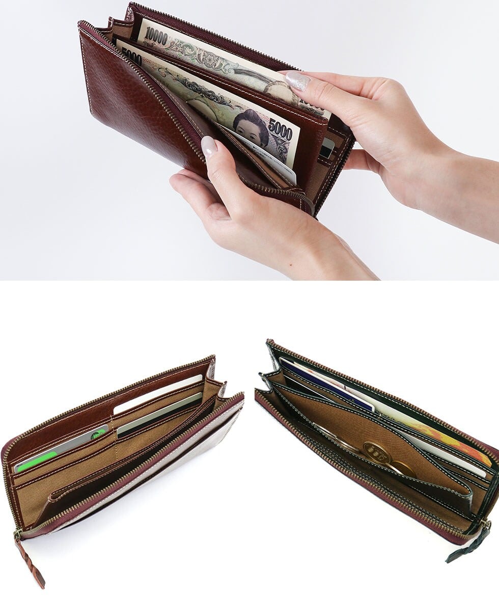 仕様 |[外側] ・ポケット(L)×1 [内側] ・小銭入れ×1 ・カードポケット×12 ・ポケット(L)×1
