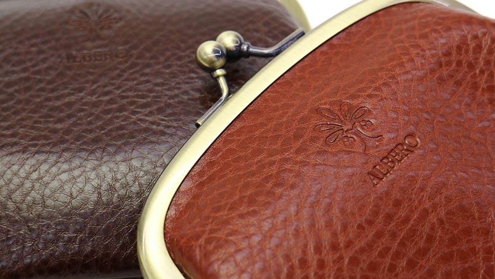 「自然を大切に」と思うデザイナーがイタリアや日本の職人と作り上げたALBERO。こちらはシボ感とツヤが魅力のイタリア製レザーで仕立てあげた『BERRETTA/ベレッタ』シリーズのがま口財布です。コロンとした優しいデザインが女性らしく、大切な人への贈り物にも最適です。