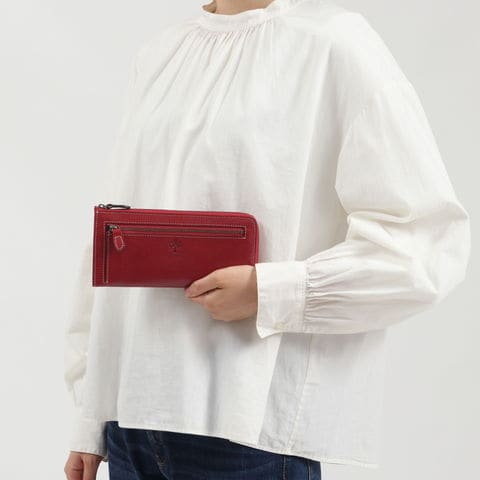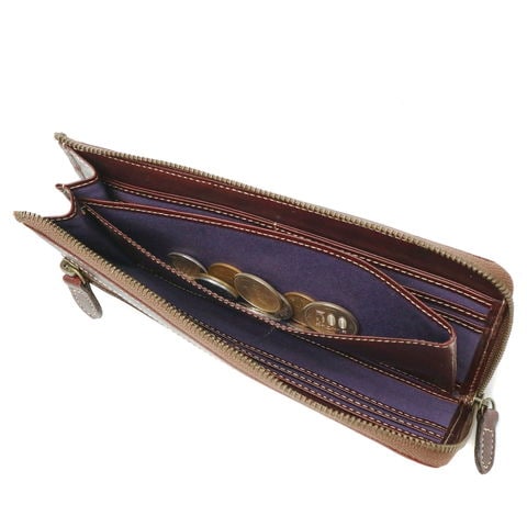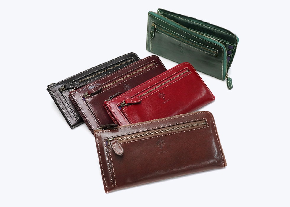 透明感あるレザーの美しい表情が魅力的な『OLDMADRAS/オールドマドラス』シリーズのL字ファスナー財布。イタリア製の牛革にタンポナートと呼ばれる手染めを施すことにより光沢を出し、奥深い風合いに仕上げています。薄マチデザインのためバッグの中でもかさばることがなく、使い勝手抜群のアイテムです。