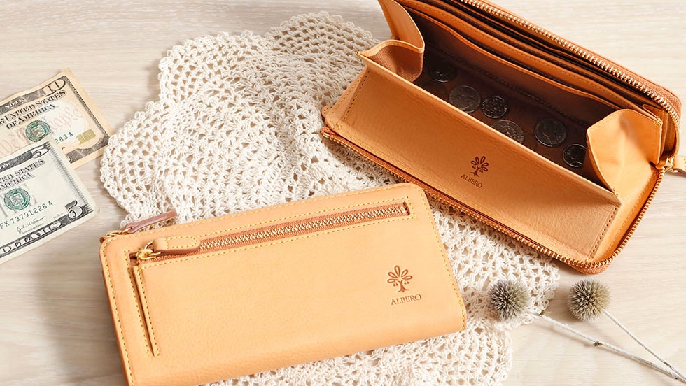 「自然を大切に」と思うデザイナーがイタリアや日本の職人と作り上げたALBERO。そのフィロソフィーを象徴する『NATURE/ナチュレ』シリーズから、使い勝手抜群の小銭入れを搭載したラウンドファスナー長財布が登場です。女性らしい優しい雰囲気で、贈り物にもオススメのシリーズとなっています。