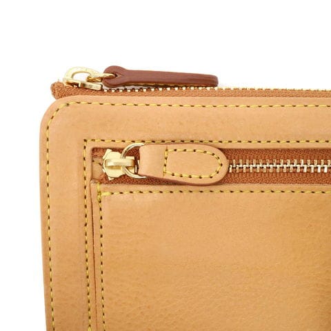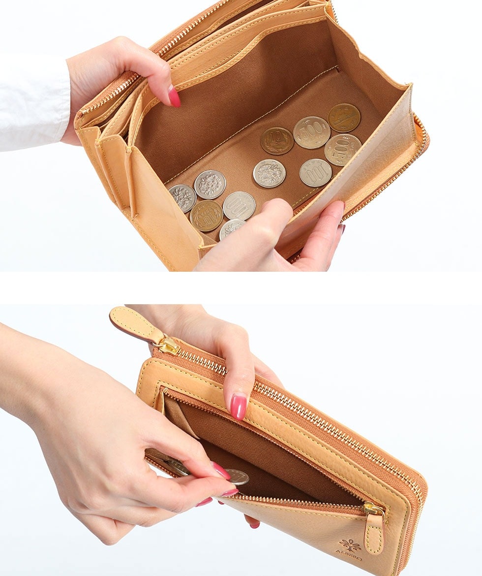 本体は、大きく開き視認性に優れたL字ファスナータイプとなっています。使いやすさのポイントは、メイン収納口と背面のジップ収納口の2か所からアクセスできる小銭入れ。ギャルソンタイプとなっており視認性にも優れ、お会計をスムーズに行うことができます。