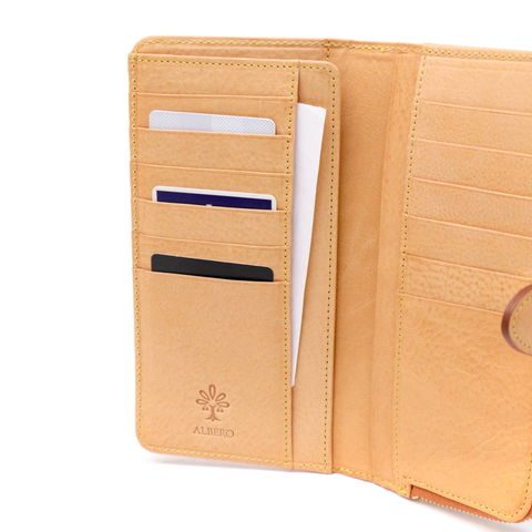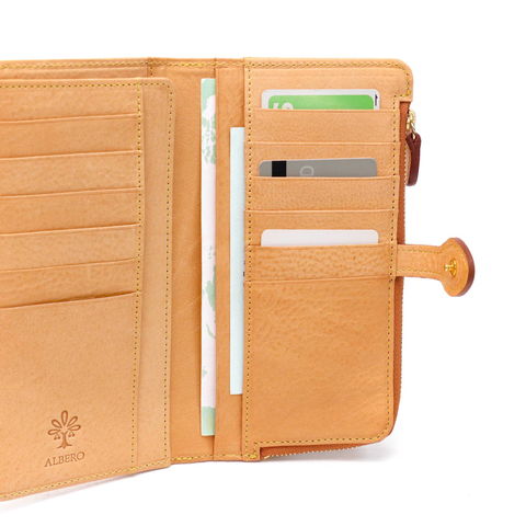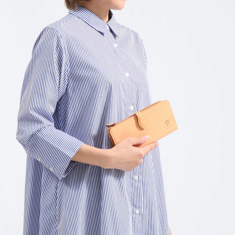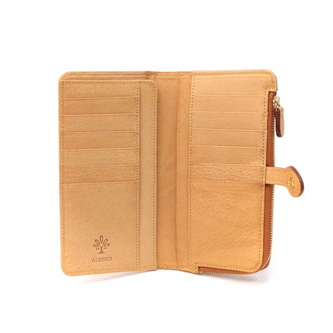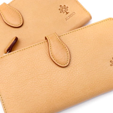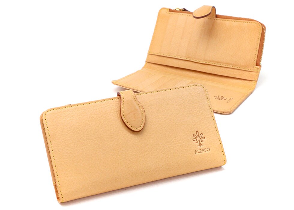 「自然を大切に」と思うデザイナーがイタリアや日本の職人と作り上げたALBERO。そのフィロソフィーを象徴する『NATURE/ナチュレ』シリーズから、本のように開閉できる二つ折り長財布が登場。使い込むほどにあたたかみのある色合いに変化してゆく、経年変化も楽しめるアイテムです。