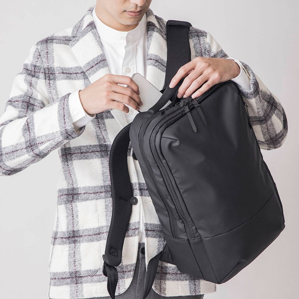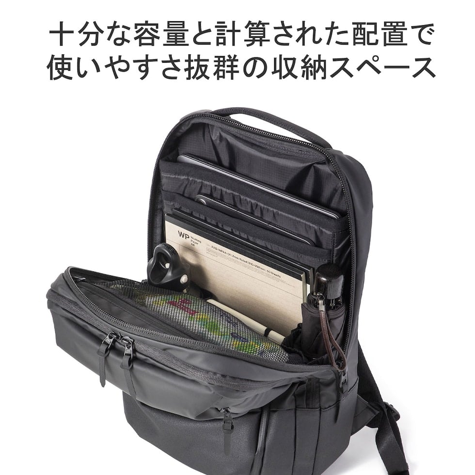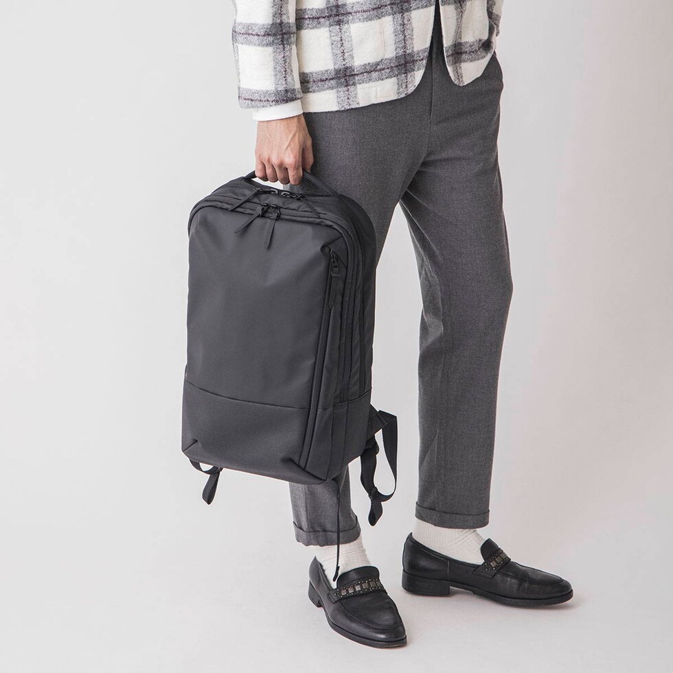 ビジネスマンが持ち歩くアイテムをリサーチし、何をどこにしまうか計算しつくされた、多彩で実用性抜群の収納配置が魅力のリュック。メイン生地は完全オリジナルで、コーデュラナイロンの強さに加え、圧倒的な耐水圧を誇るポリカーボネート加工施した、雨や汚れに強い仕上がりとなっています。(耐水圧60000mm以上)裏地には、丈夫で引き裂きに強く、ペットボトルを100%リサイクルしたエコ素材を使用したこだわりの設計。半世紀以上にわたり、名だたるブランドのOEM ODM(企画・生産)を手掛けた老舗バッグメーカーが、全てのビジネスマンに捧ぐ至高の一品です。