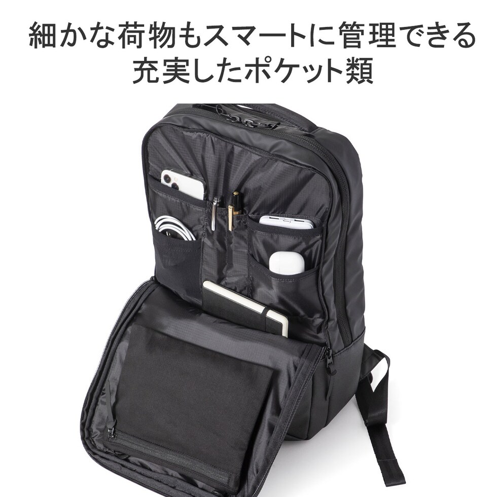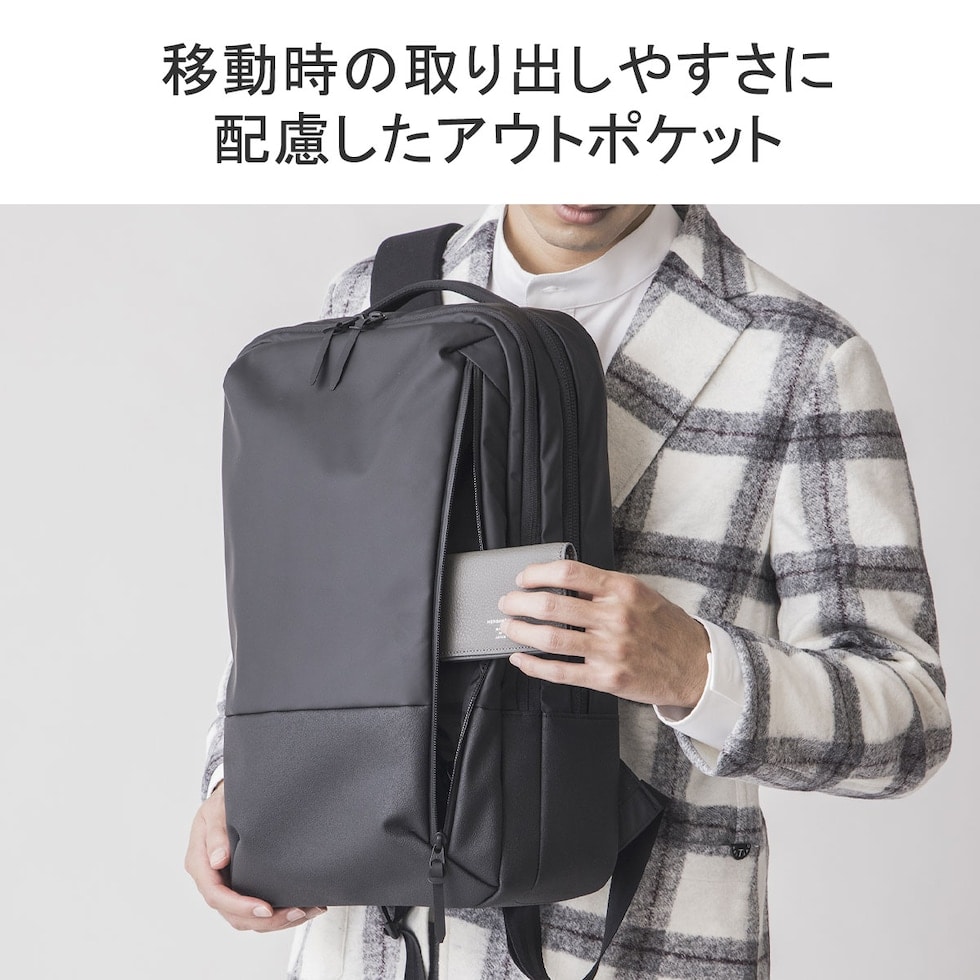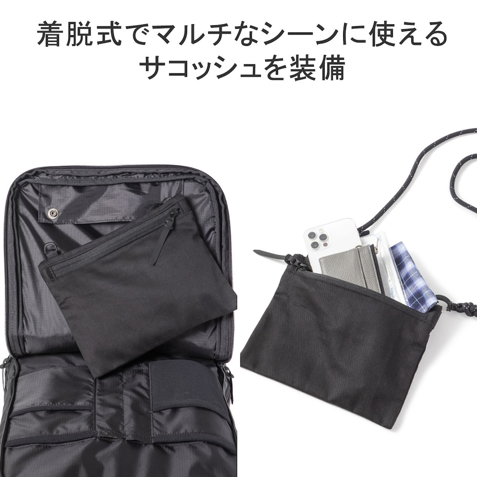 詳細説明 メインルームには、PC・タブレットの専用ポケットを装備。ポケットは底上げを図ることで、PCやタブレットが床にあたりにくくなっており、大切なデバイス類の管理も安心して行えます。サブルームには細かい仕切りポケットを充実させています。Wi-Fiルーター、イヤホン、充電ケーブル、携帯電話などのガジェット類をすっきりと収納可能。また、取り外し可能なサコッシュを備えており、荷物を置いて身軽に出歩きたい際に重宝します。こちらのサコッシュの本体生地は抗菌・抗ウイルス機能繊維加工技術クレンゼを施した素材を使用しているので、サブバッグとしてや、休日の外出用にまで、マルチにお使いいただけます。