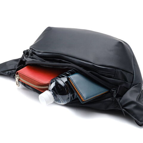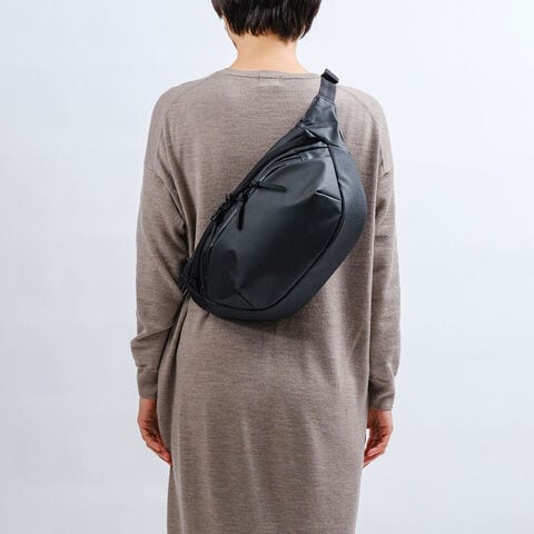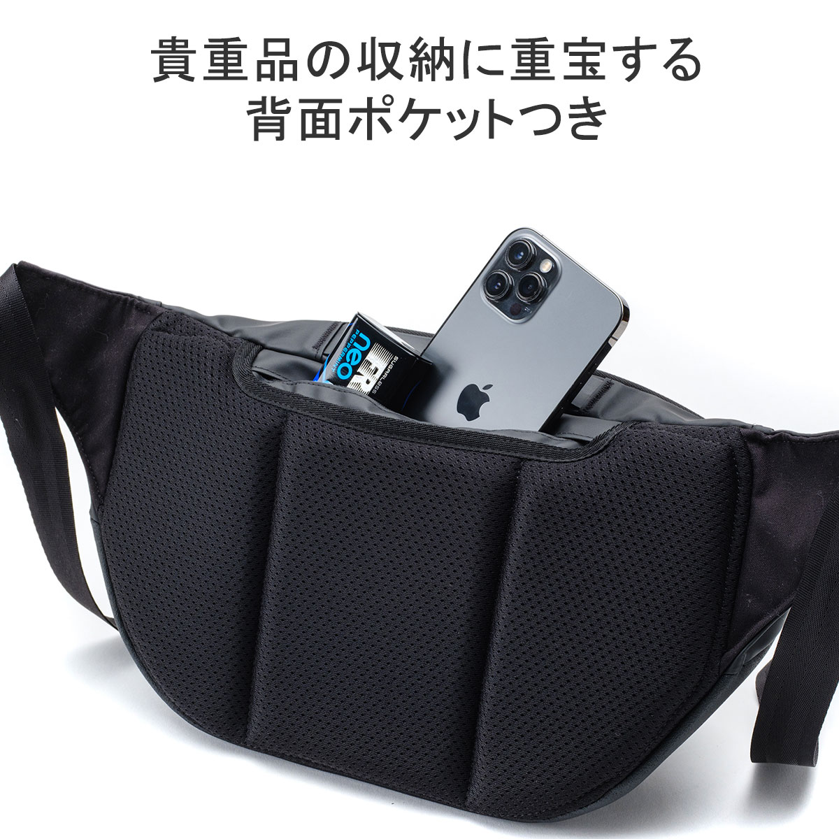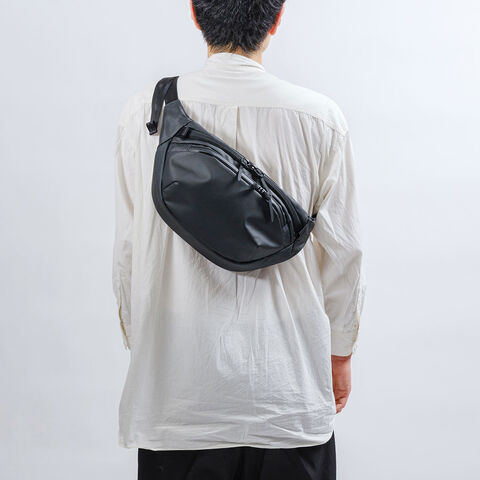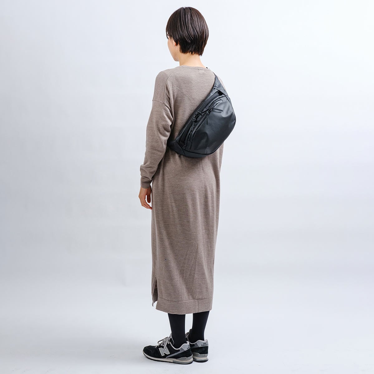 休日シーンを中心に持ち歩くアイテムをリサーチしたうえで、何をどこにしまうか計算しつくされた収納配置が魅力のボディバッグ。メイン生地は完全オリジナルで、コーデュラナイロンの強さに加え、圧倒的な耐水圧を誇るポリカーボネート加工を施した、雨や汚れに強い仕上がりとなっています。(耐水圧60000mm以上)裏地には、丈夫で引き裂きに強く、ペットボトルを100%リサイクルしたエコ素材を使用したこだわりの設計。名だたるブランドのOEM・ODM(企画・生産)を手掛けた老舗バッグメーカーが捧げる、外出のお供に最適なハイスペックモデルです。