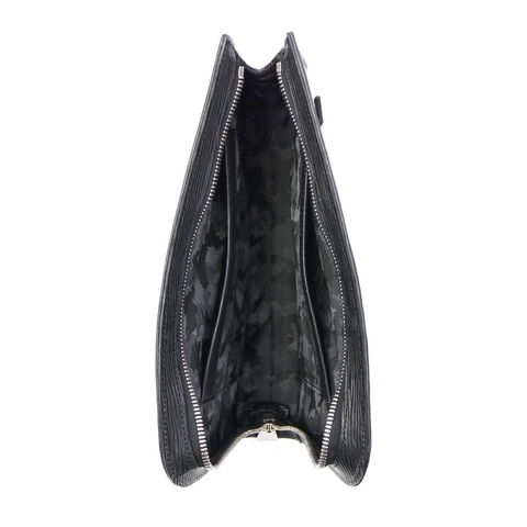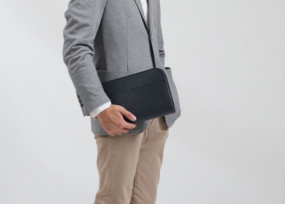 光のあたる海面を感じさせる「ウェーブレザー」を使用した、コンパクトなクラッチバッグ。少し小さめなサイズ感が、より良い持ち歩きやすさを実現しています。手の甲をしっかりとホールドするバンドと底の丸みで使い心地も良く、スマートな大人の装いにぴったりなアイテムです。
