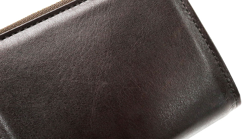 素材には、成牛のなかでもキメの細かいステアをクロームでなめした、柔軟性と弾力のあるレザーを使用。時間と手間をかけ表皮を傷めることなくソフトな銀面をつくりだした、艶のあるソフトな風合いが特徴です。手作業のムラ染めによる独特な色調が魅力的。