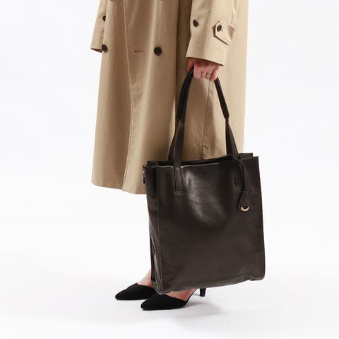 “世界一柔らかい革”を目指して作られた素材「Reality Leather」を使ったトートバッグ。ハンドルは肩掛けしやすいように長めに設計しつつ、手で持った時にバッグの底が地面につきにくいギリギリの長さを見切ることで、肩掛けでも手持ちでもストレスフリーで持ち運べる仕様となっています。シンプルな仕様の中に、使い勝手を高める工夫が込められた逸品です。