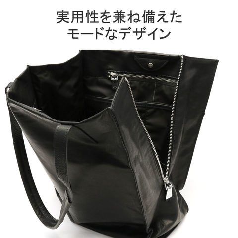 こちらの素材は、柔らかさや風合い豊かな質感を追求するべく、色を整えるのが難しいとされるドラム染色のみで調色されています。職人の手作業をまじえながら手間暇をかけて丁寧に作られ、ラフに使えば使うほどに、どんどん柔らかくなり手に吸い付くようなしっとりとした質感へと変わっていきます。本体サイドのマチには、片方のみにファスナーを搭載。肩掛けのままでもアイテムを取り出しやすく、視認性も格段にアップしています。アシンメトリーなデザインで醸し出される、モードな雰囲気も魅力です。