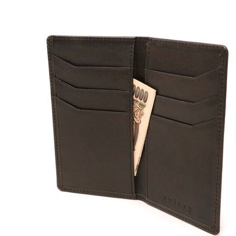しっとりとした柔らかな質感と肌触りが特徴の『Antique Leather』を使用したカードケース。薄さ重視でコンパクトに設計されたこちらは、小銭は持たなくてもカードは持ち運びたいというシーンに最適。カード入れは外側への飛び出しを防ぐため、端に向かってレザー面積を増やす仕様になっている等、シンプルかつ気の利いたデザインです。